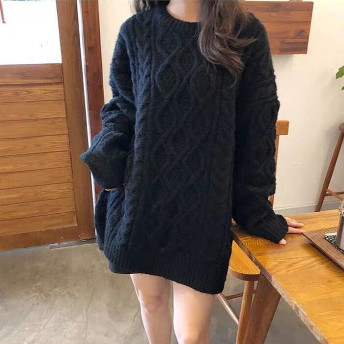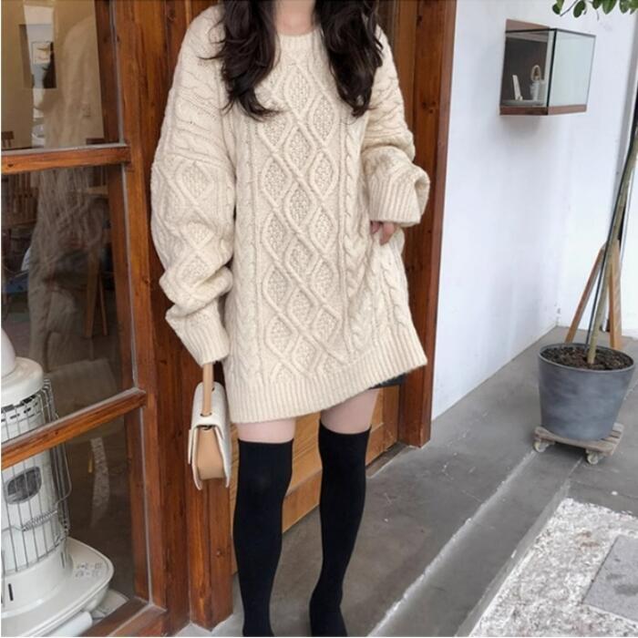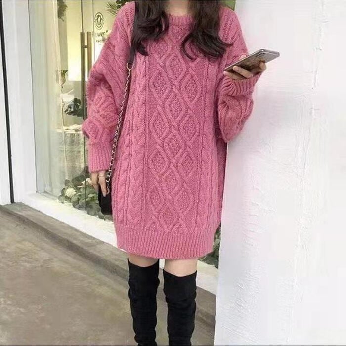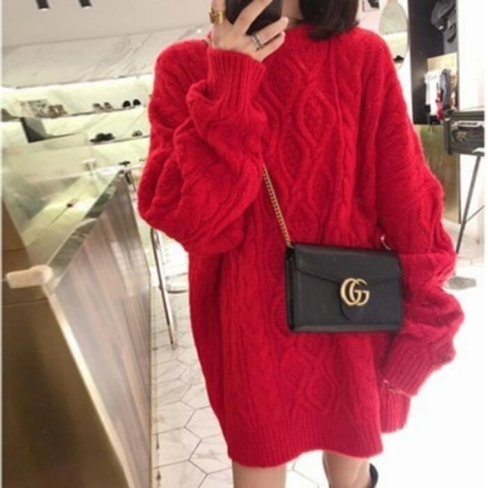 全5色 大きいサイズ トップス ニット セーター チュニック ワンピース レディース きれいめ カジュアル 長袖 クルーネック 大人 可愛い フェミニン おしゃれ ケーブル シンプル 韓国 ベージュ ピンク レッド 赤 グレー ブラック 黒 春 秋 冬 20代 30代 40代 50代