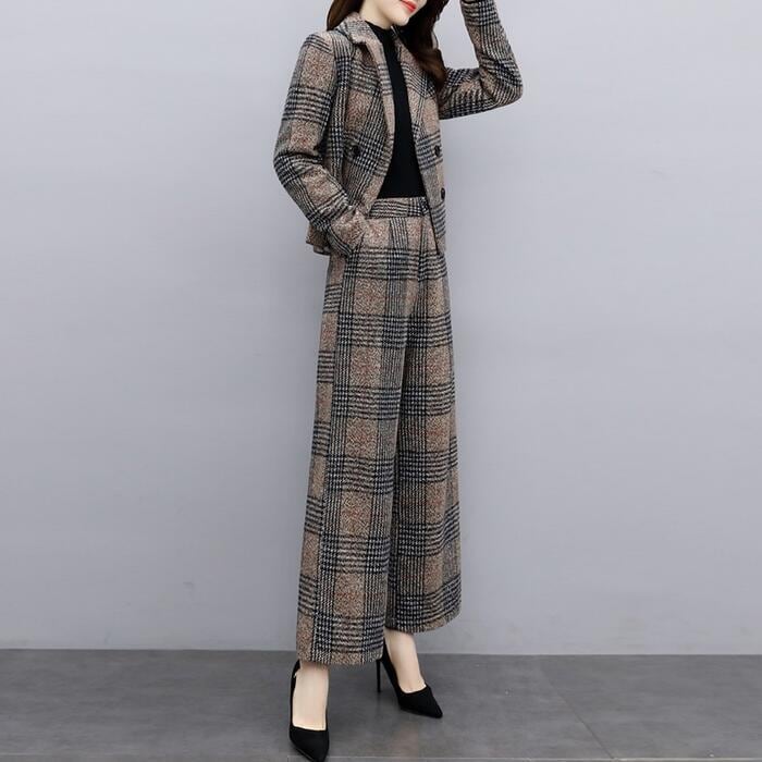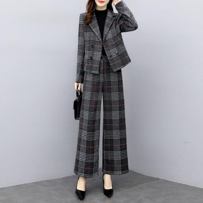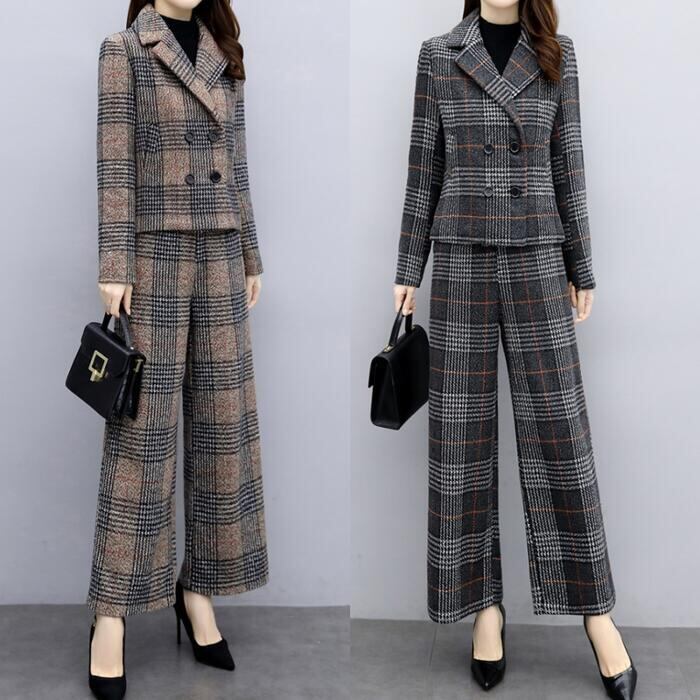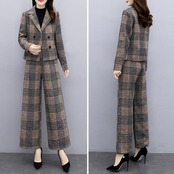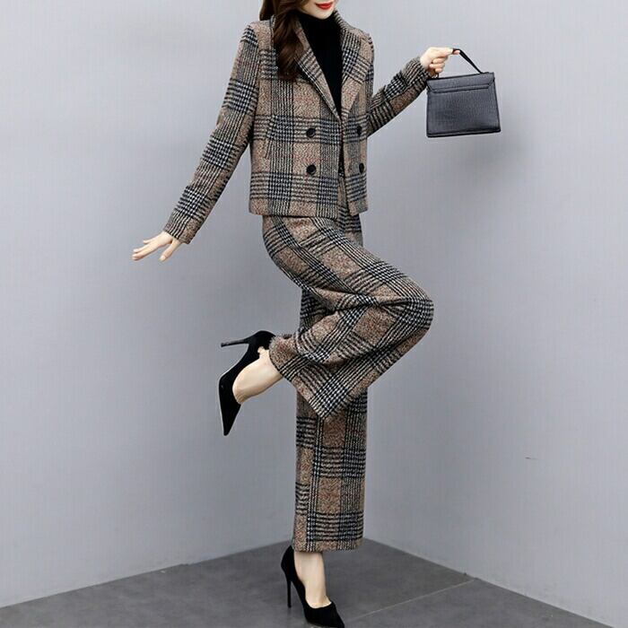 全2色 体型カバー 入学式 ママスーツ レディース 大きいサイズ おしゃれ 卒業式 母 卒園式 入園式 ジャケット セットアップ セレモニー スーツ 七五三 お宮参り 母親 ママ フォーマル パンツ セット チェック 長袖 ブラウン ブラック 黒 春 秋 冬 20代 30代 40代 50代