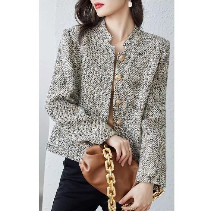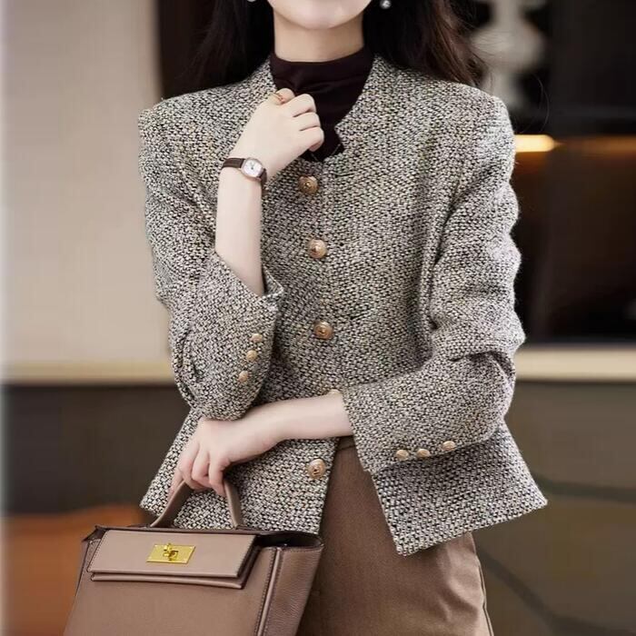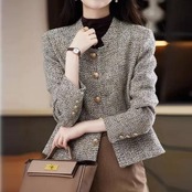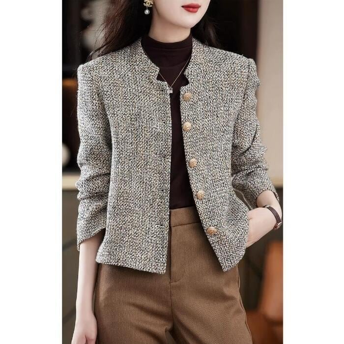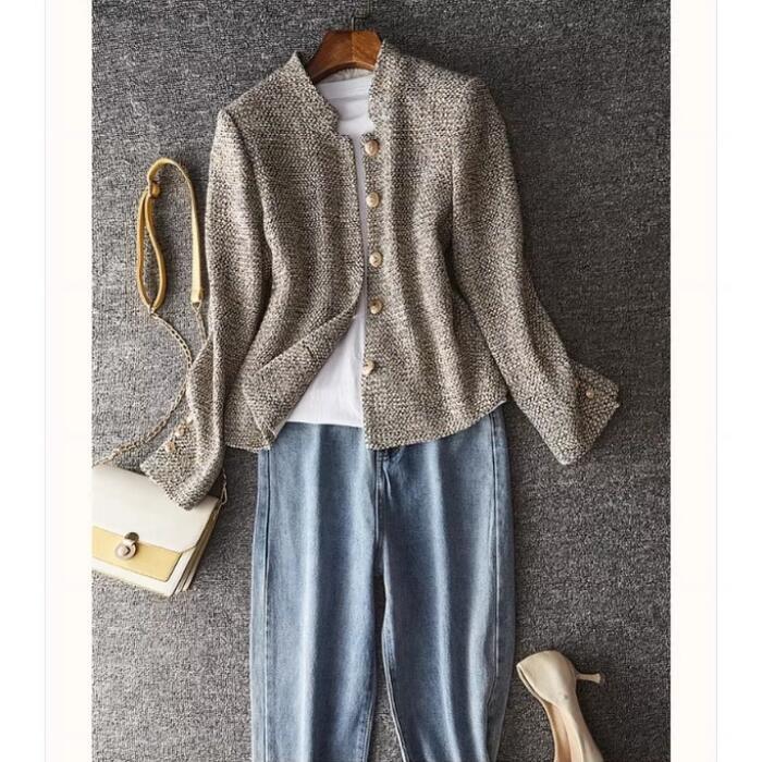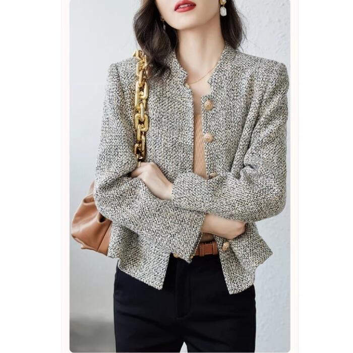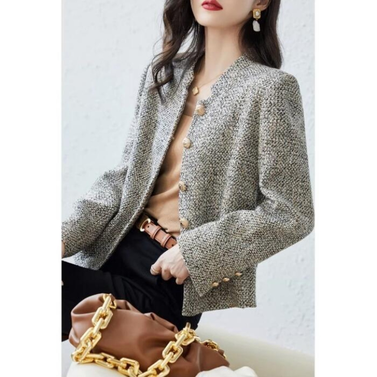 大きいサイズ アウター コート ジャケット ツイード ノーカラー レディース エレガント きれいめ カジュアル 大人 可愛い フェミニン おしゃれ 体型カバー シンプル セレモニー お呼ばれ オケージョン 通勤 グレー 春 秋 冬 20代 30代 40代 50代