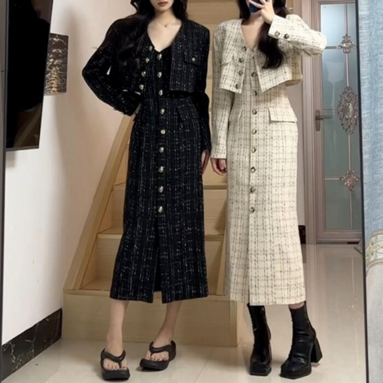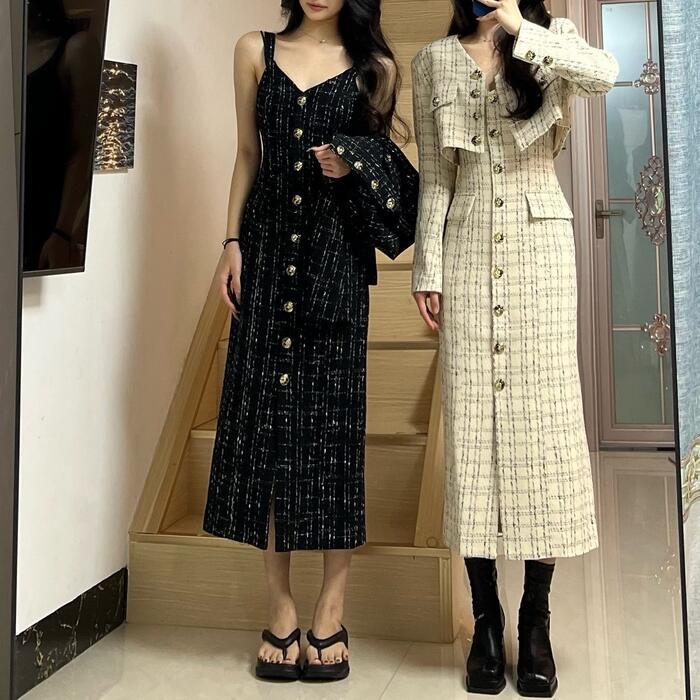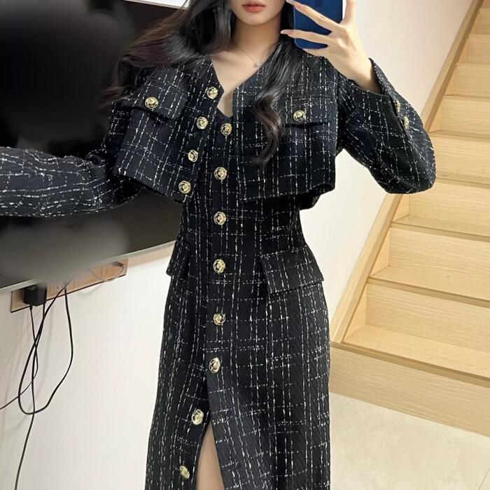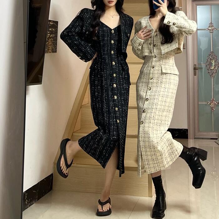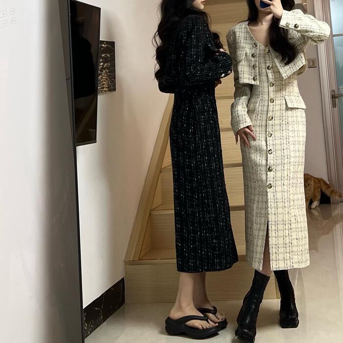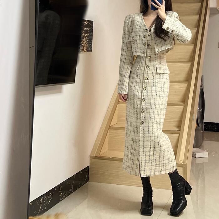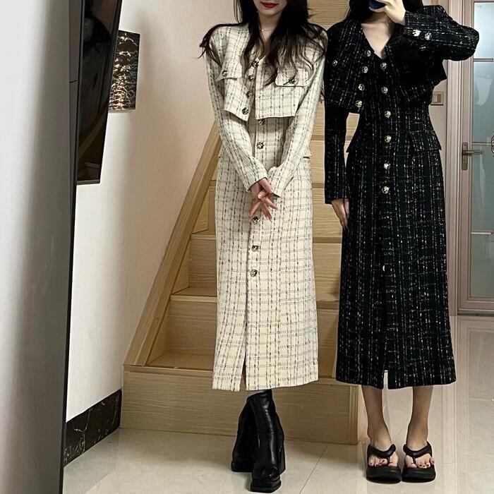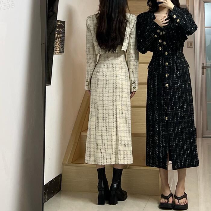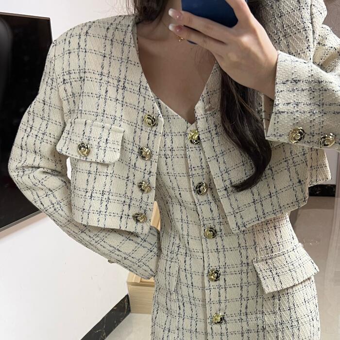 ツイード生地が上品フェミニンなジャケット&ワンピースセット。