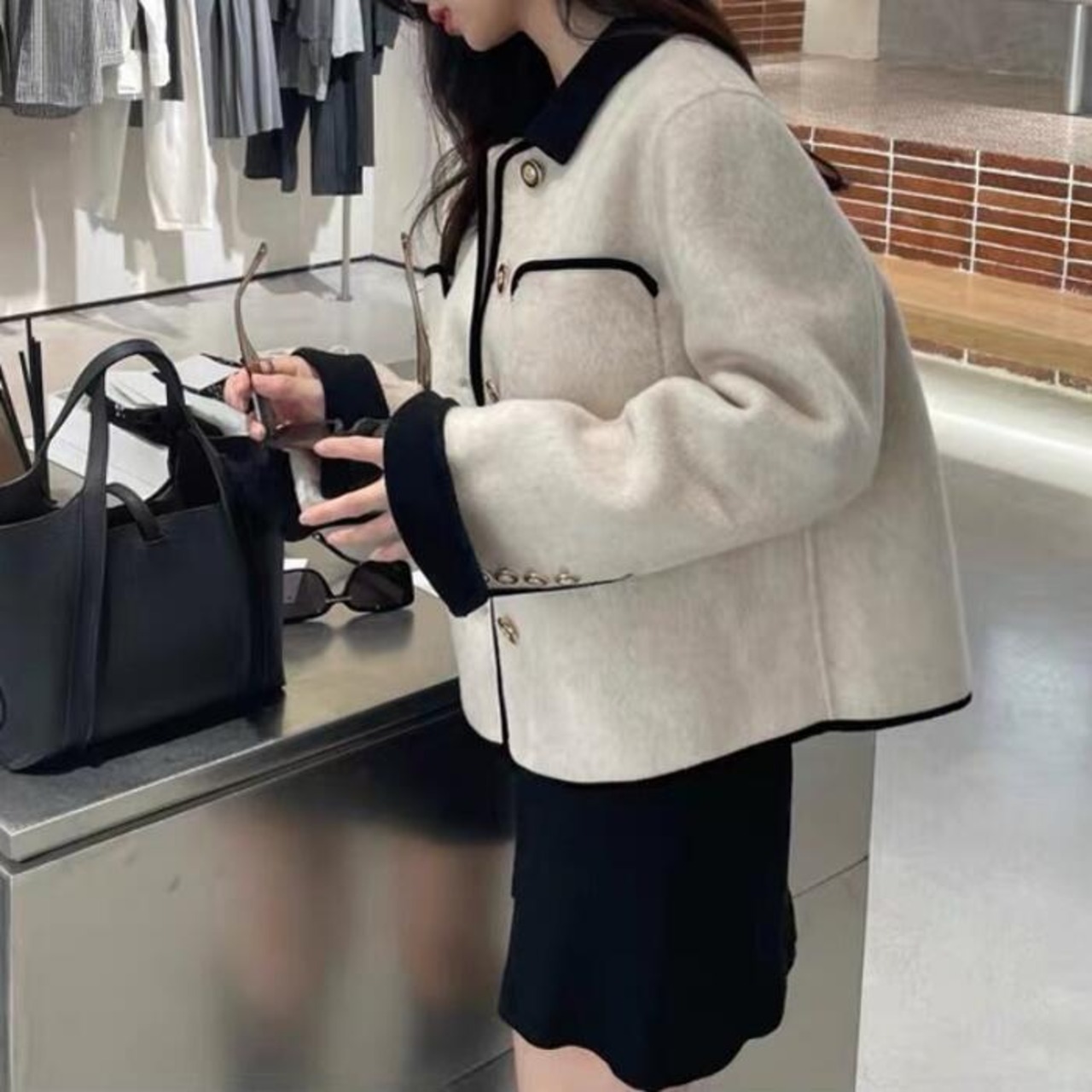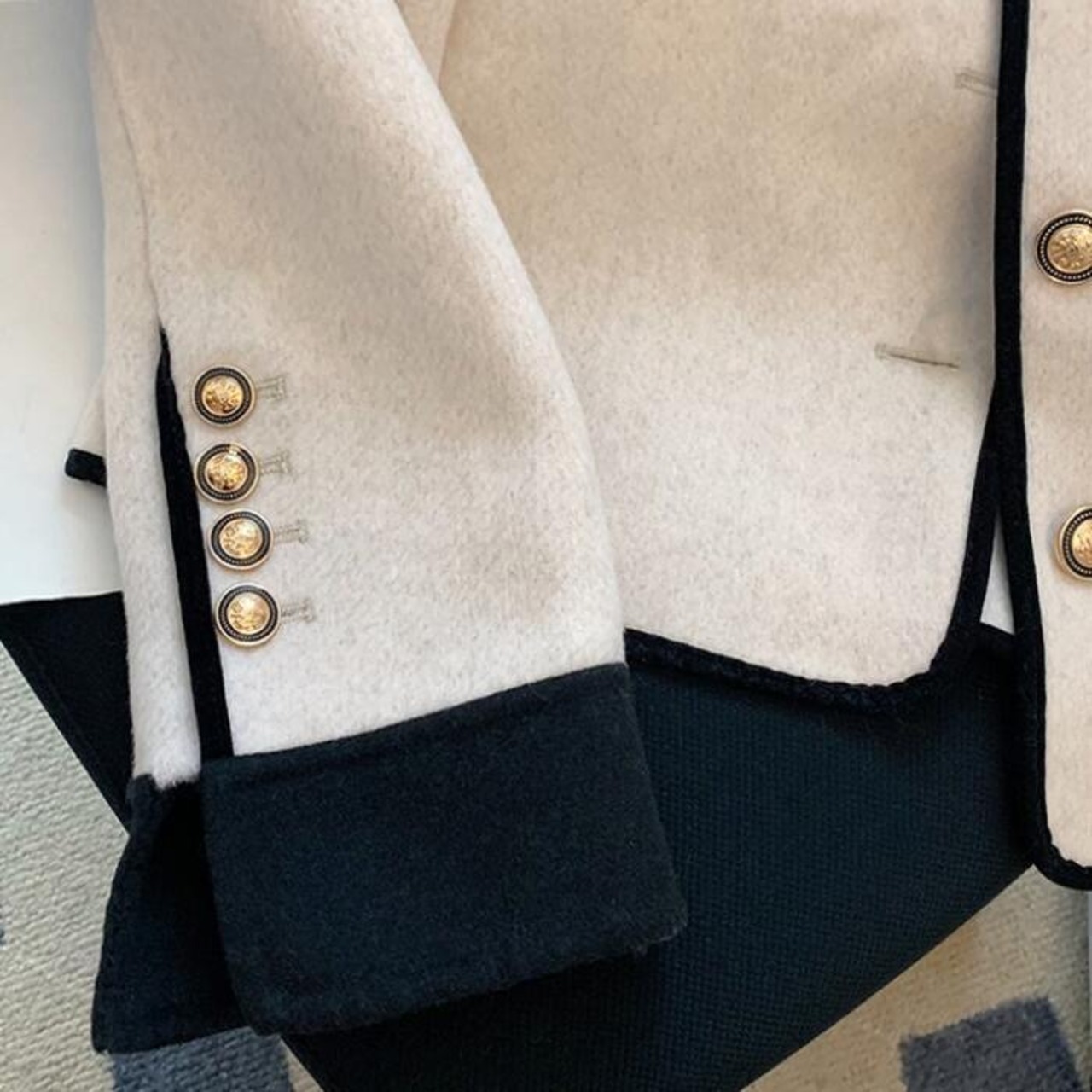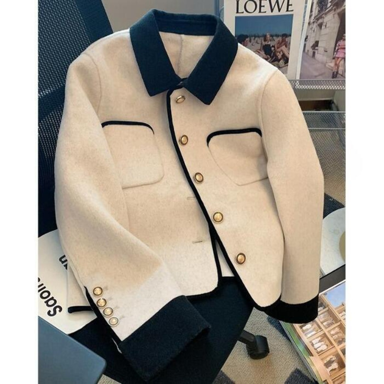 バイカラーの配色デザインがポイントのジャケット。