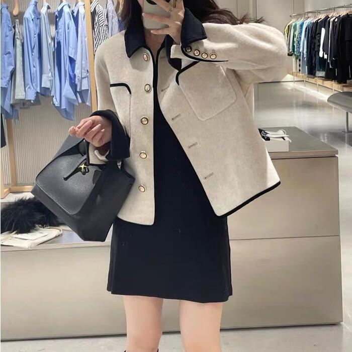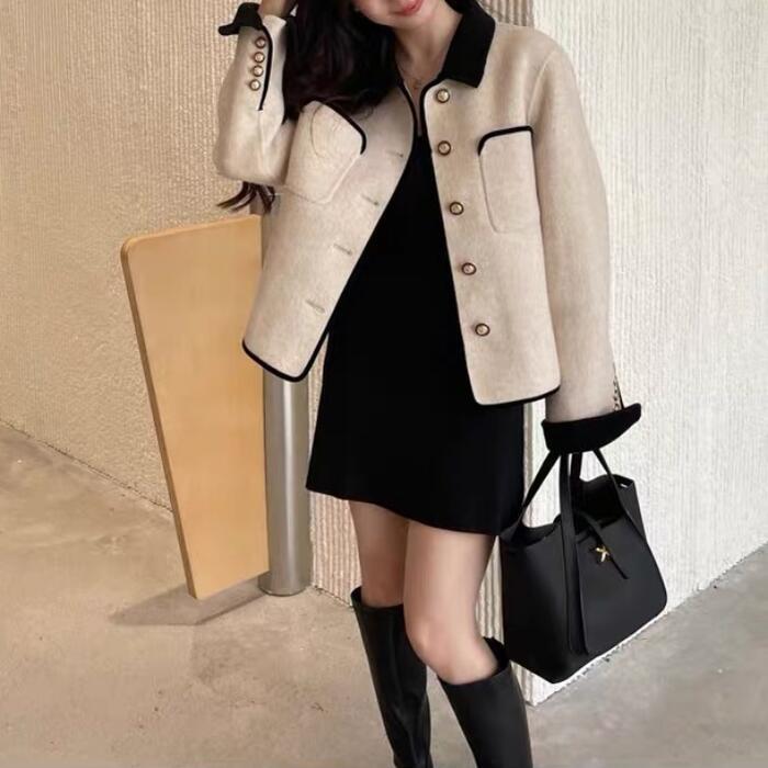 アウター コート ジャケット ステンカラー バイカラー レディース エレガント きれいめ カジュアル 大人 可愛い フェミニン おしゃれ 配色 体型カバー ゆったり シンプル セレモニー お呼ばれ オケージョン 通勤 ベージュ 春 秋 冬 20代 30代 40代 50代