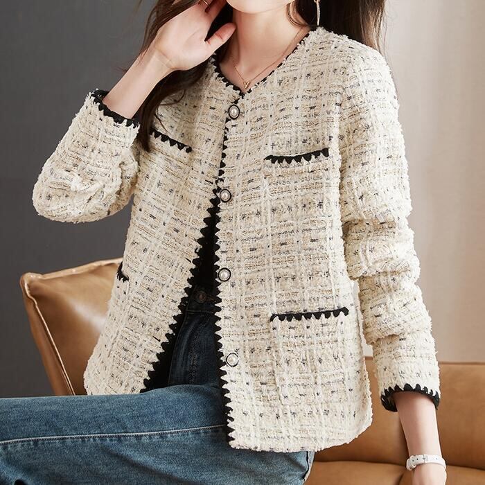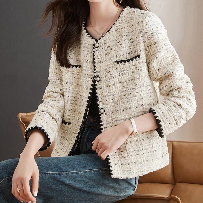 全2種 大きいサイズ アウター コート ジャケット ツイード ノーカラー レディース エレガント きれいめ カジュアル 大人 可愛い フェミニン おしゃれ 体型カバー ゆったり シンプル セレモニー お呼ばれ オケージョン 通勤 ベージュ 春 秋 冬 20代 30代 40代 50代
