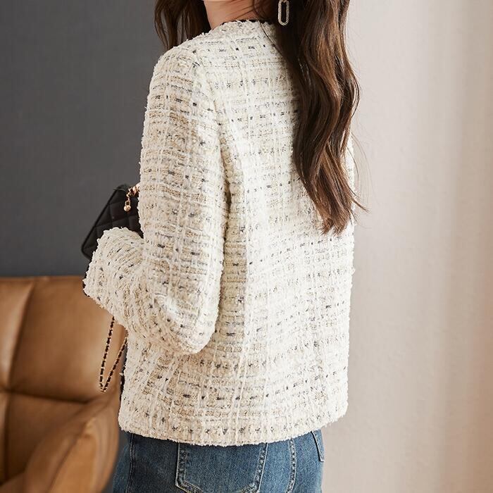 ジャストのサイズ感で美シルエットのツイードジャケット。