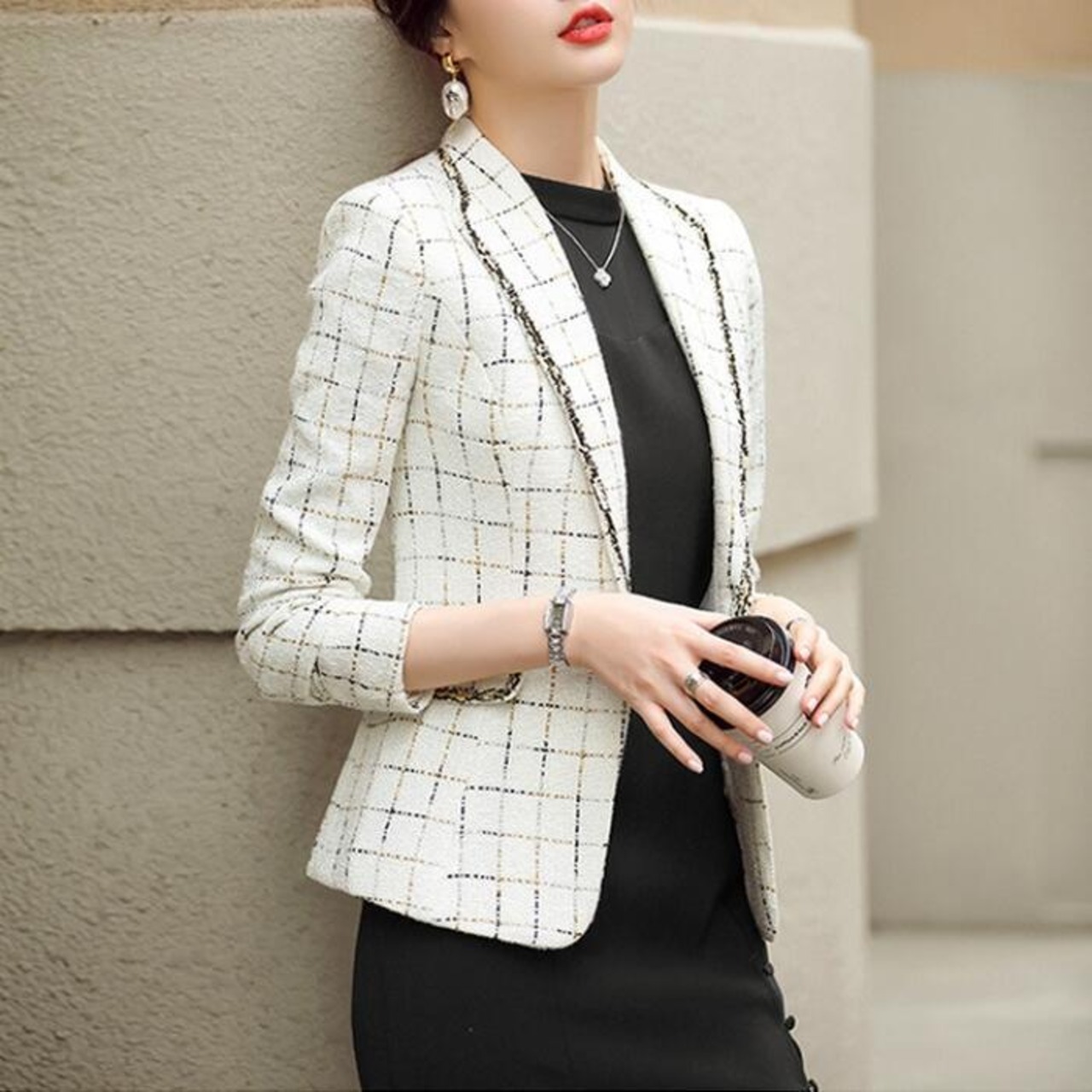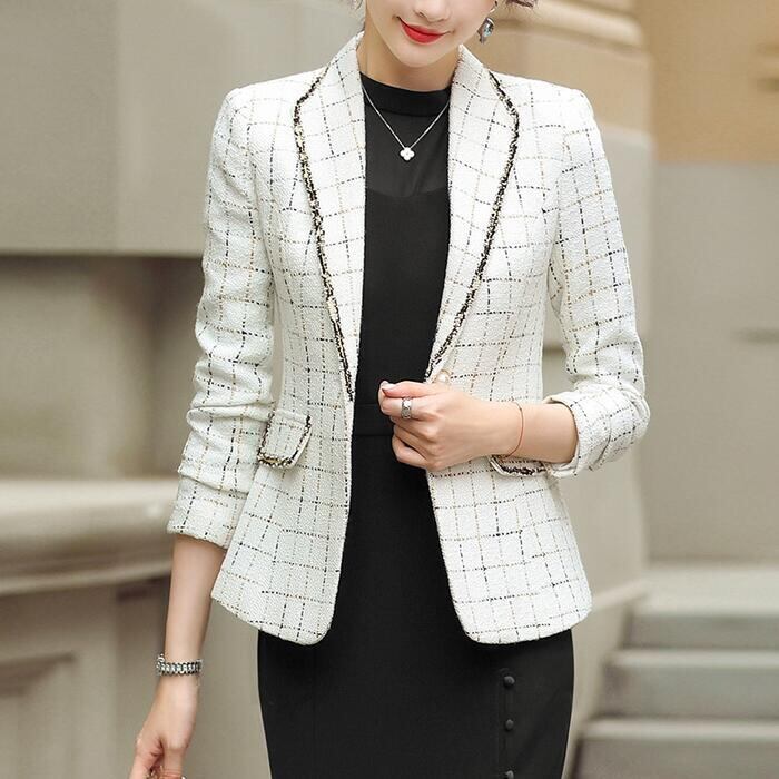 全2色 大きいサイズ チェック柄 アウター コート ジャケット ツイード テーラード レディース エレガント きれいめ カジュアル 大人 可愛い フェミニン おしゃれ 体型カバー シンプル セレモニー お呼ばれ オケージョン 通勤 ホワイト 白 ブラック 黒 春 秋 冬 20代 30代 40代 50代