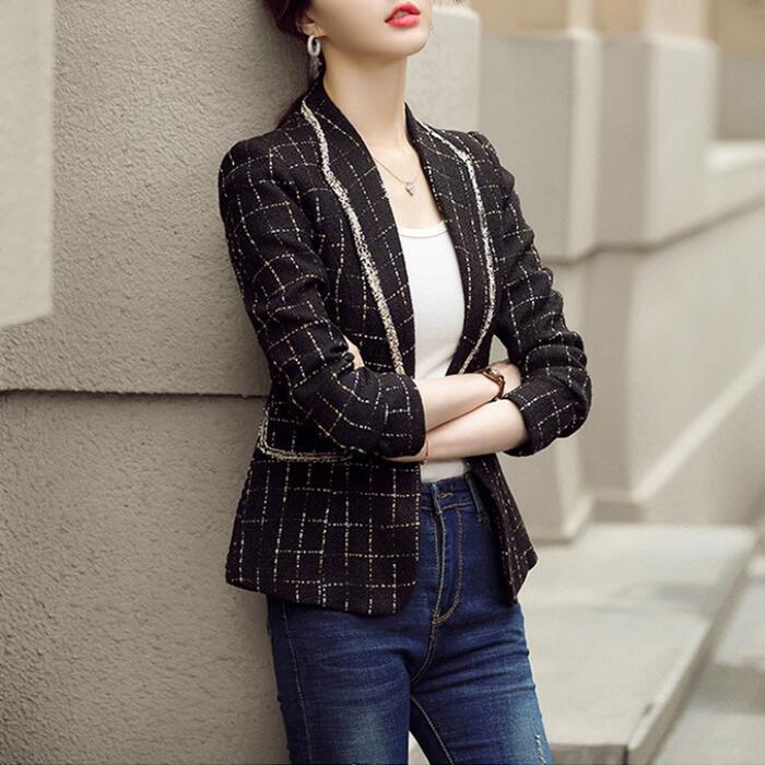 クラシカルなチェック柄のツイードジャケット。