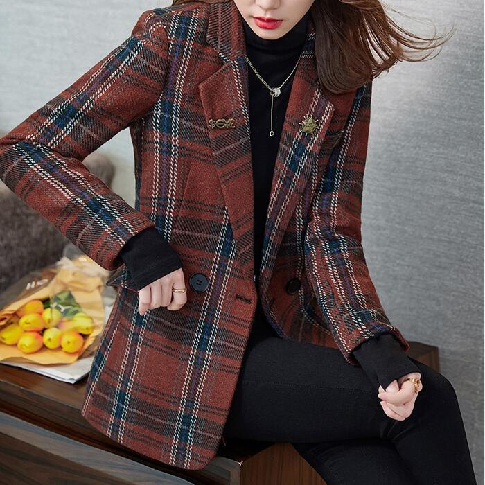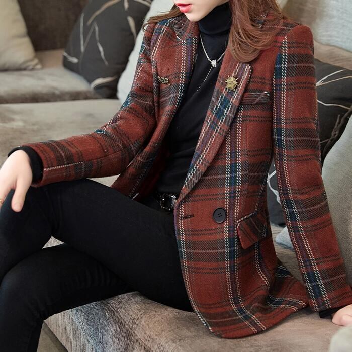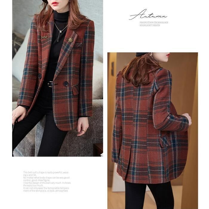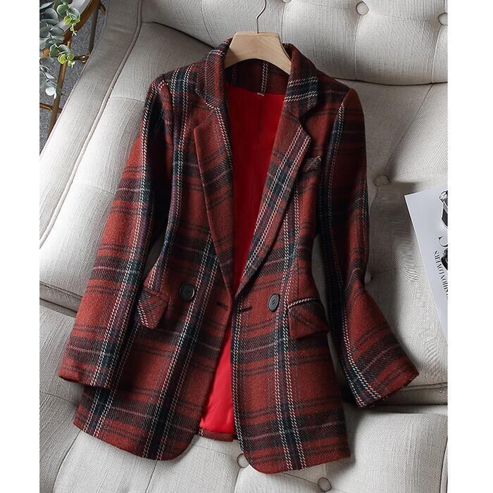 クラシカルなチェックが柄が可愛いテーラードジャケット。