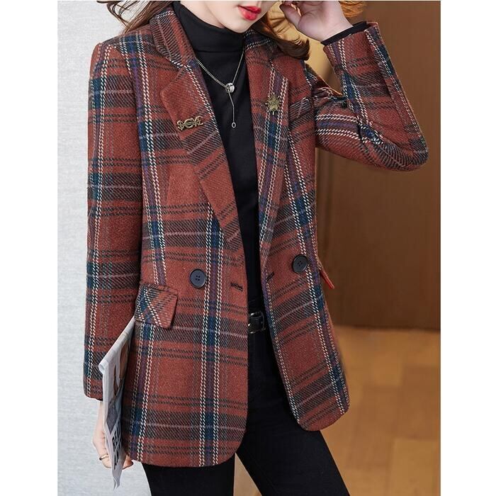 大きいサイズ トラッド アウター コート ジャケット チェック テーラード レディース エレガント きれいめ カジュアル 大人 可愛い フェミニン おしゃれ かっこいい 体型カバー お呼ばれ 通勤 レッド 赤 春 秋 冬 20代 30代 40代 50代