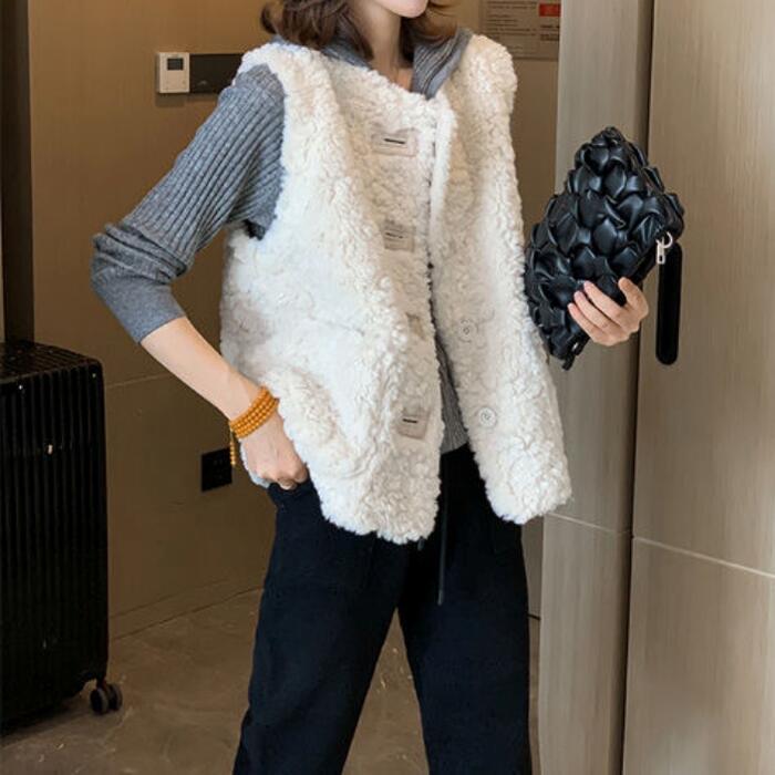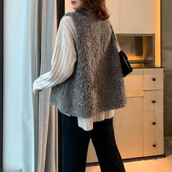 全2色 大きいサイズ トップス ベスト ジレ ジャケット 羽織り ファー ボア レディース エレガント きれいめ カジュアル ノースリーブ 大人 可愛い フェミニン シンプル ゆったり 体型カバー レイヤード 重ね着 ホワイト 白 グレー 春 秋 冬 20代 30代 40代 50代