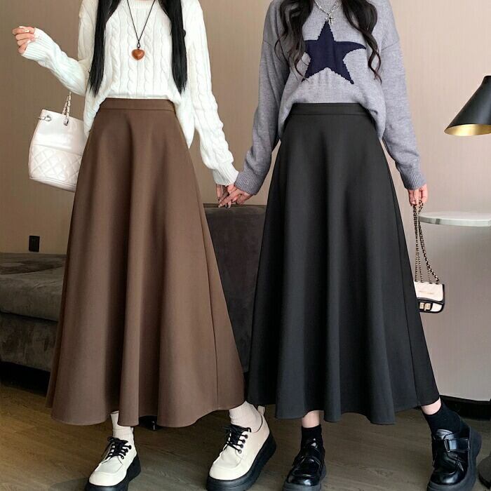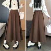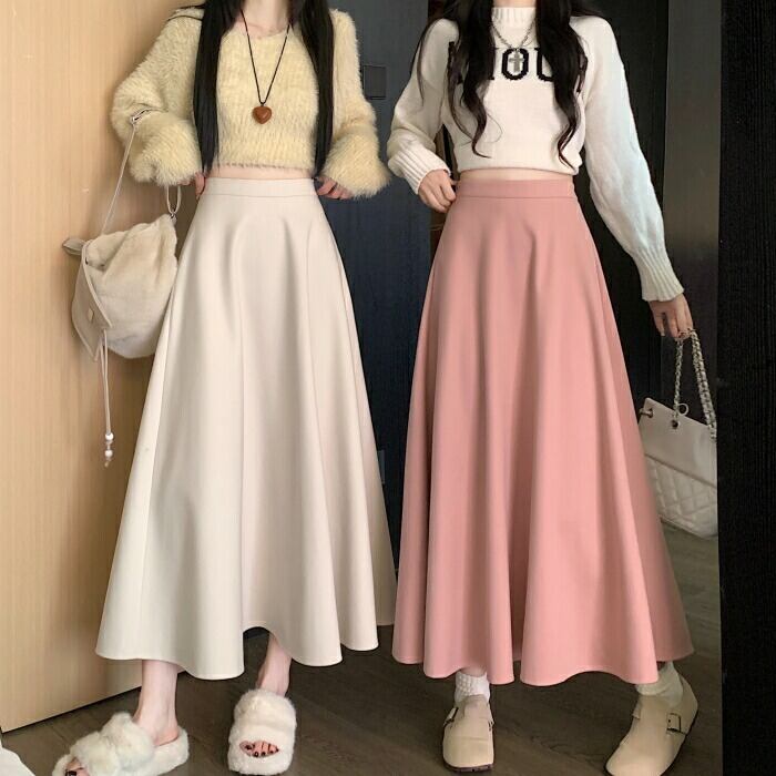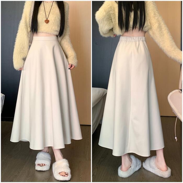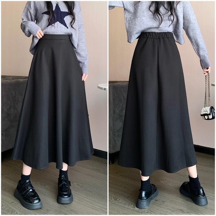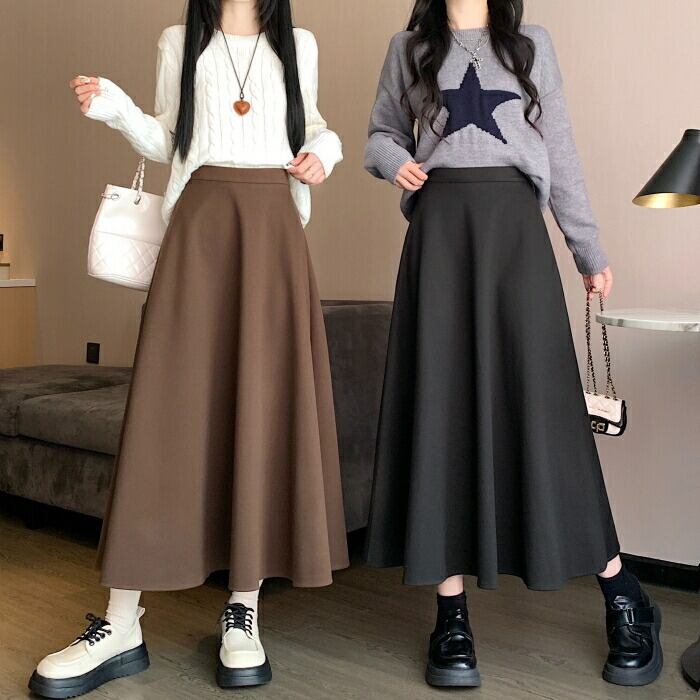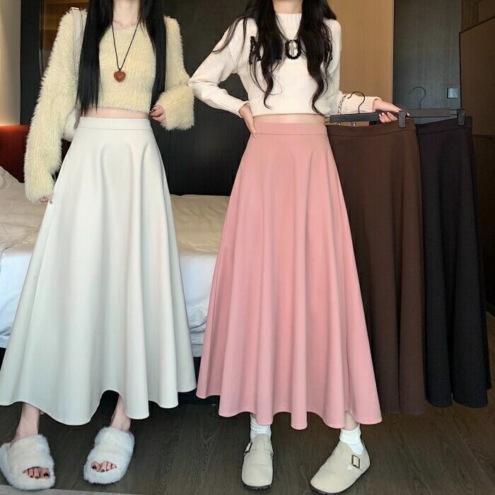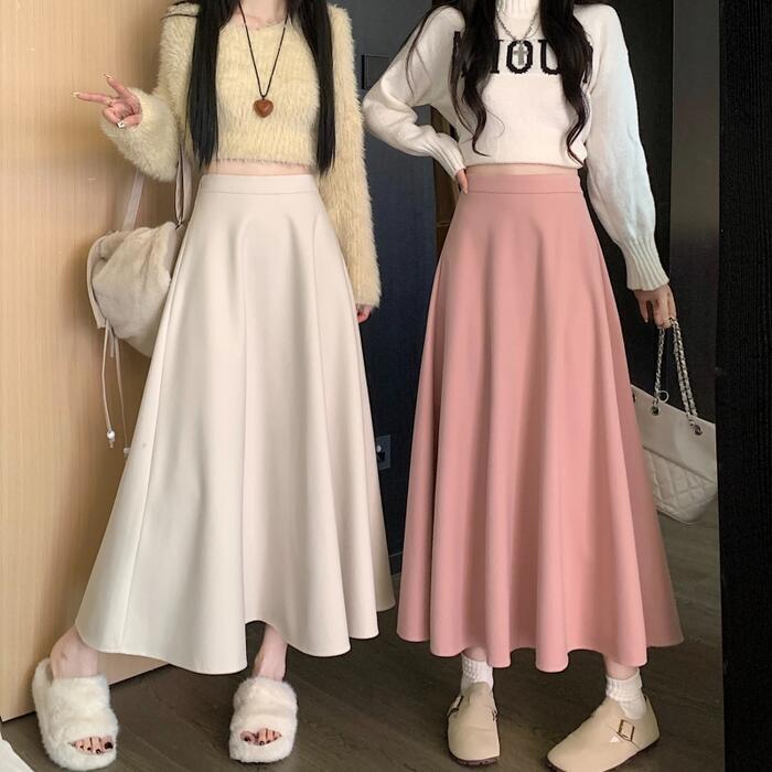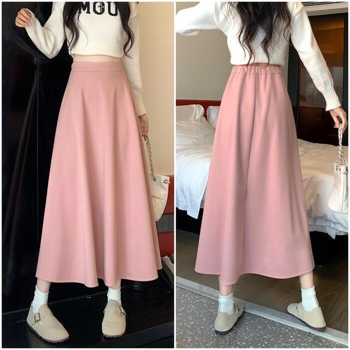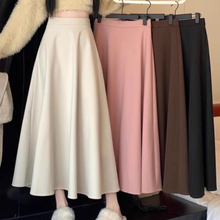 全4色 大きいサイズ ボトムス スカート レディース エレガント きれいめ カジュアル ロング丈 大人 可愛い フェミニン おしゃれ シンプル フレアスカート ウエストゴム ベーシック 楽ちん ベージュ ピンク ブラウン ブラック 黒 春 秋 冬 20代 30代 40代 50代
