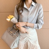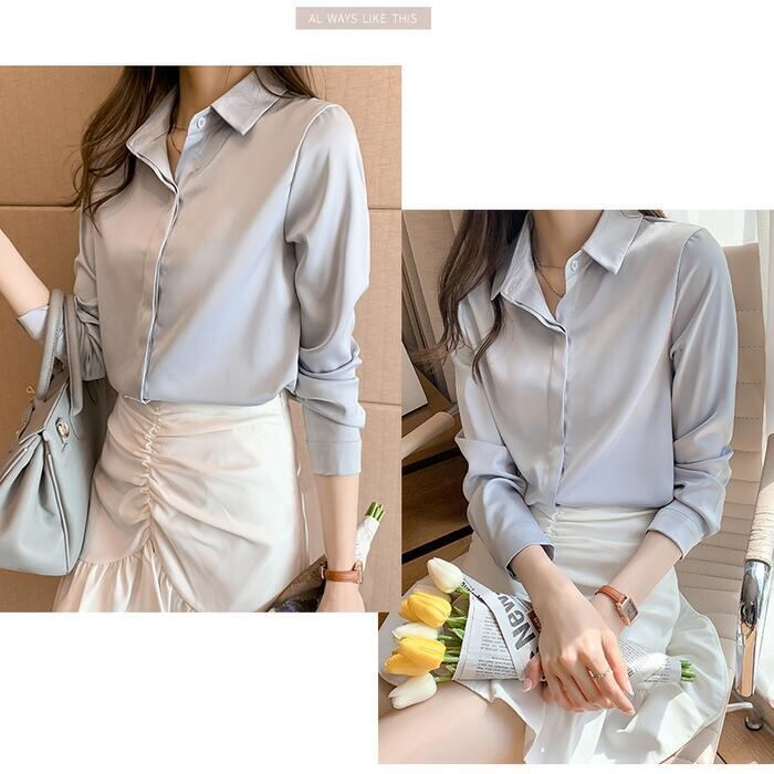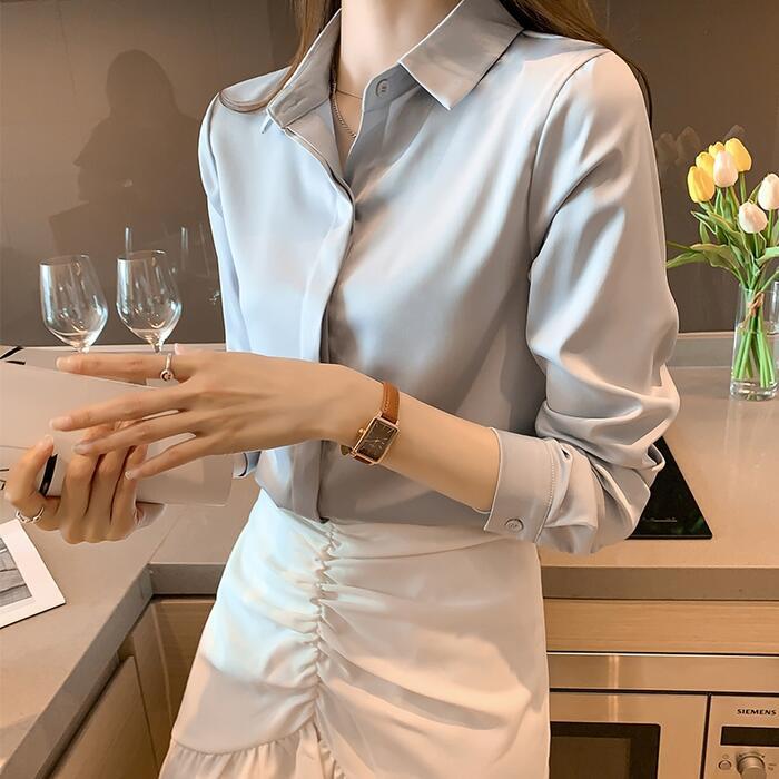 全4色 大きいサイズ トップス シャツ ブラウス レディース エレガント きれいめ カジュアル 長袖 大人 可愛い フェミニン 体型カバー ナチュラル シンプル ベーシック 通勤 オフィス 青 ブルー ベージュ ホワイト 白 グレー 春 秋 冬 20代 30代 40代 50代