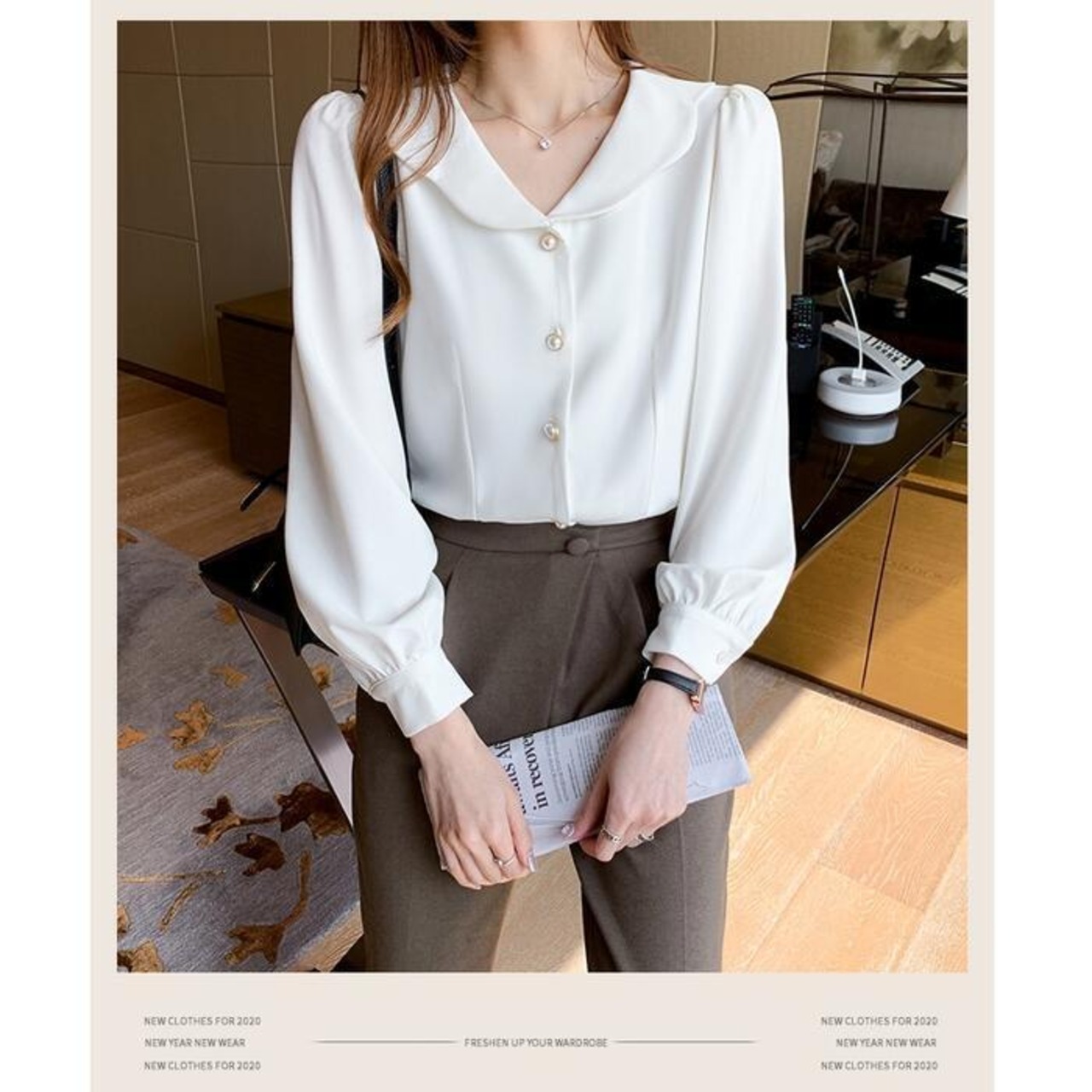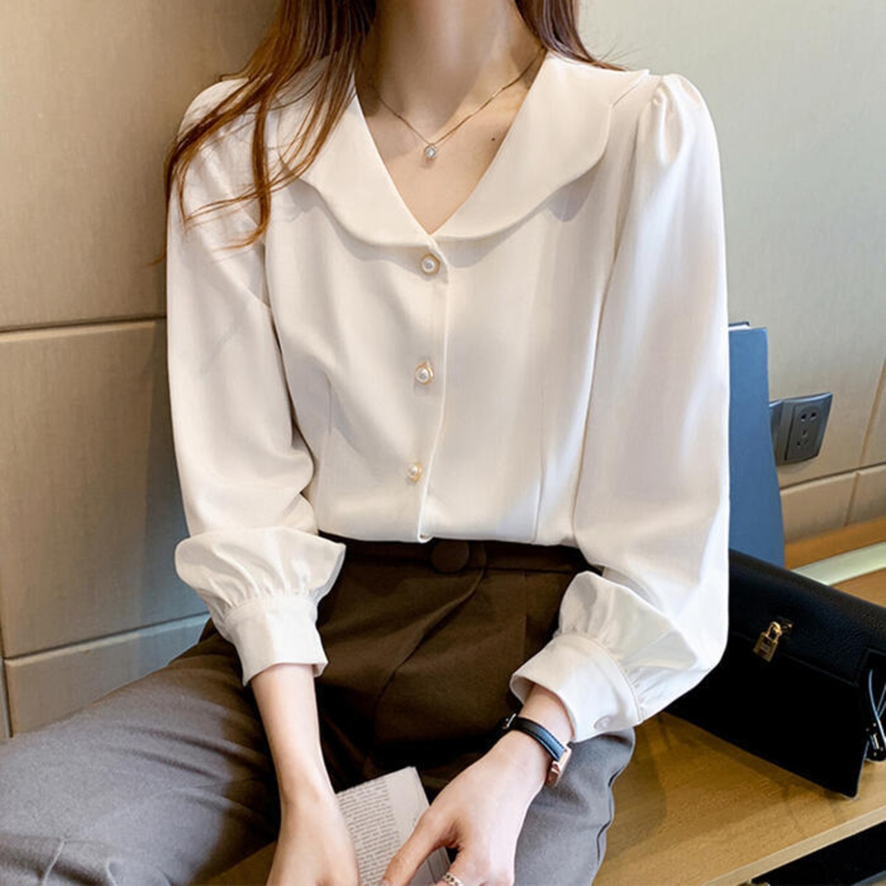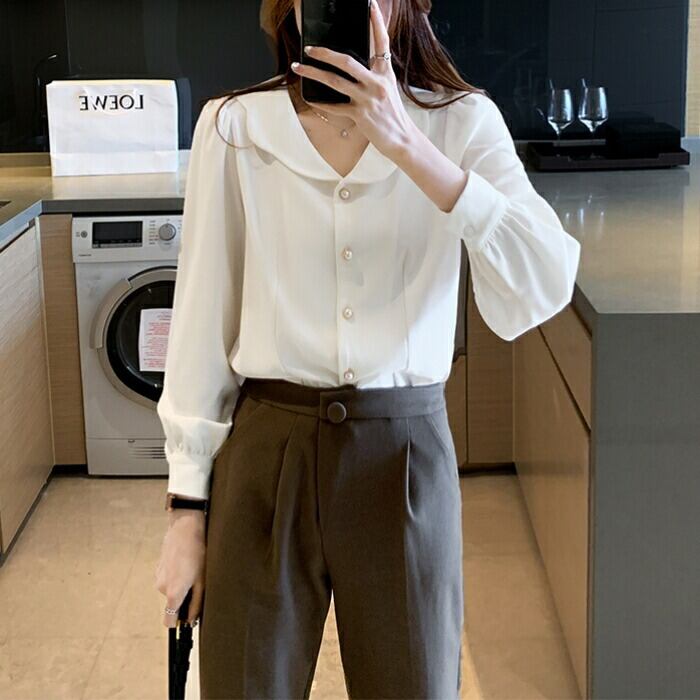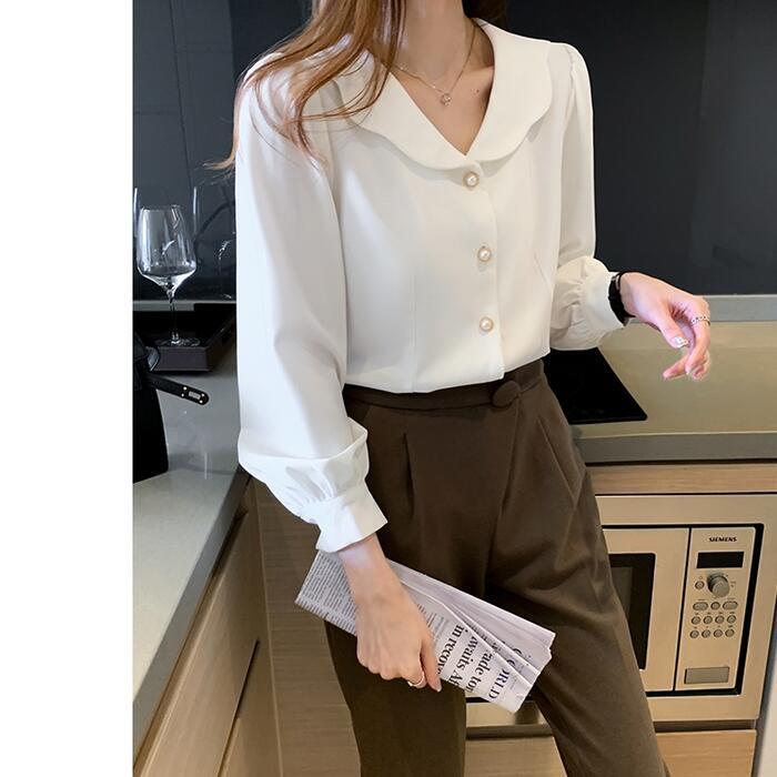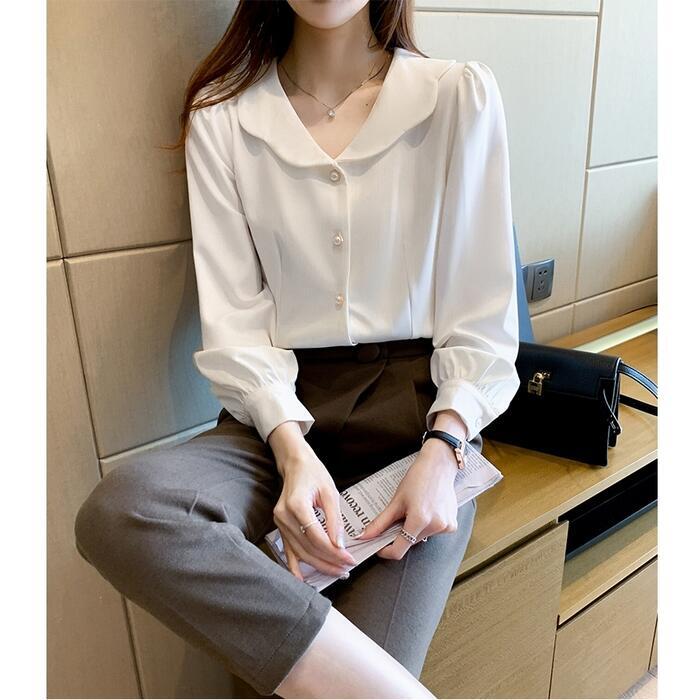 トップス シャツ ブラウス レディース ペタルカラー エレガント きれいめ カジュアル 長袖 大人 可愛い フェミニン 体型カバー ナチュラル 上品 オケージョン 通勤 オフィス 大きいサイズ ホワイト 白 春 秋 冬 20代 30代 40代 50代