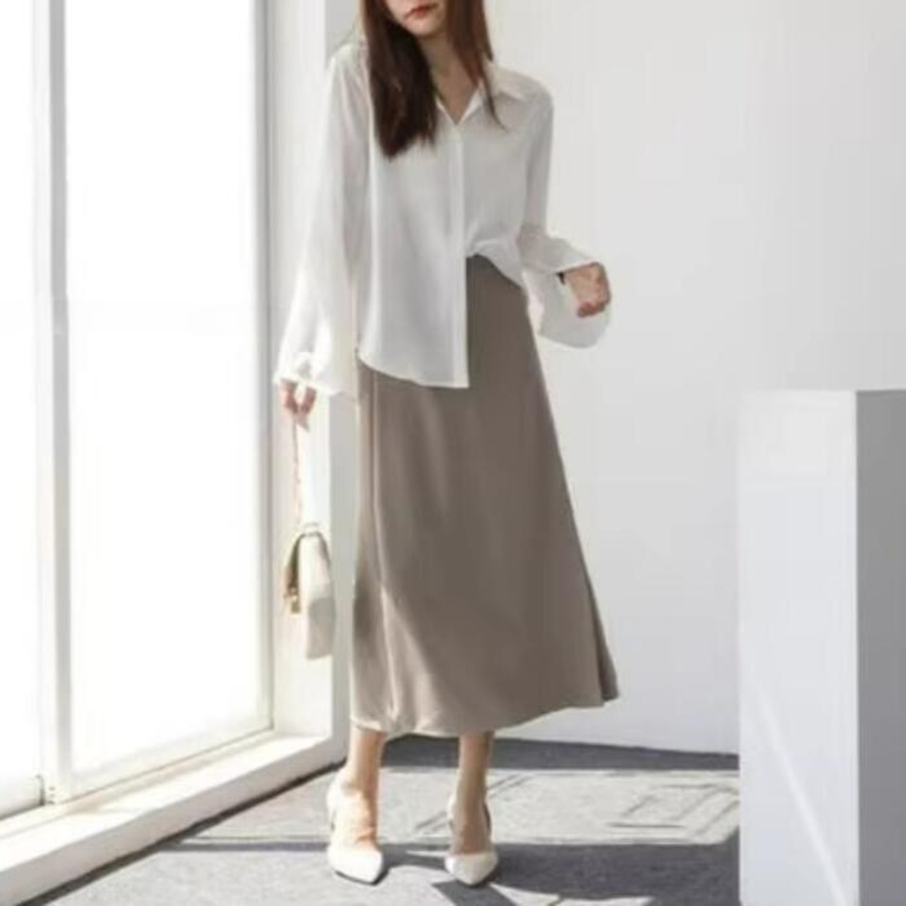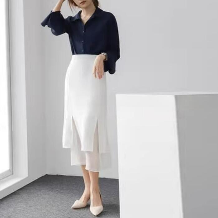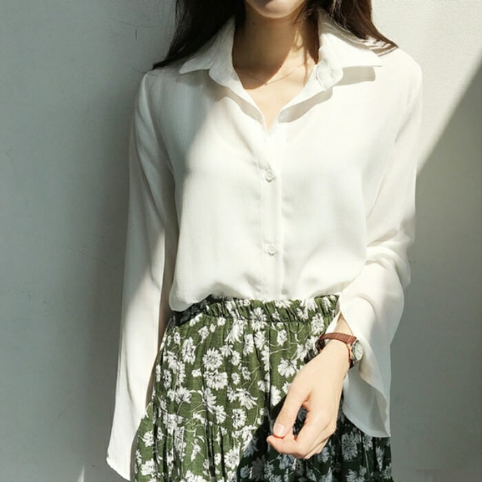 ふわりと軽やかな女性らしさを印象づけるシフォンブラウス。