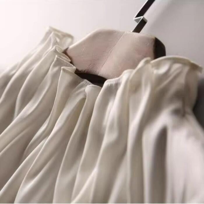 軽くしなやかな素材のハイネックブラウス。