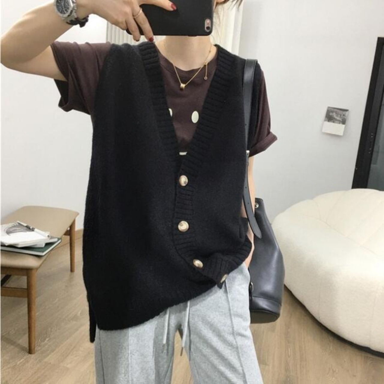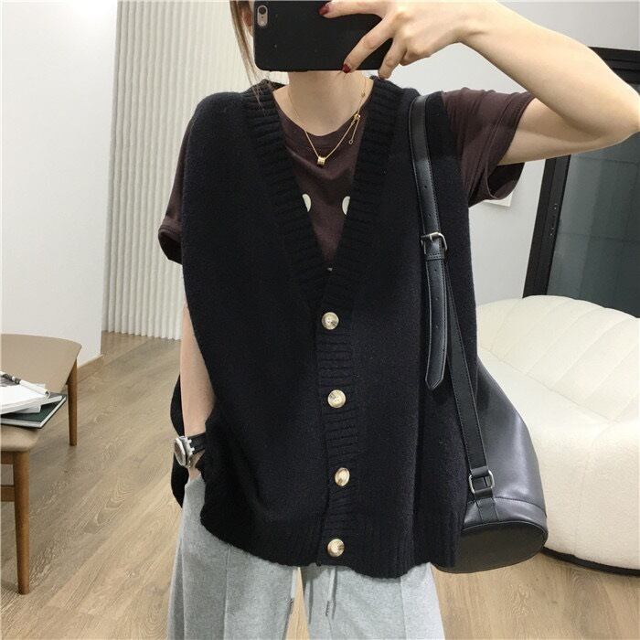 前開きデザインのニットベスト。