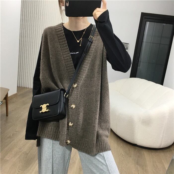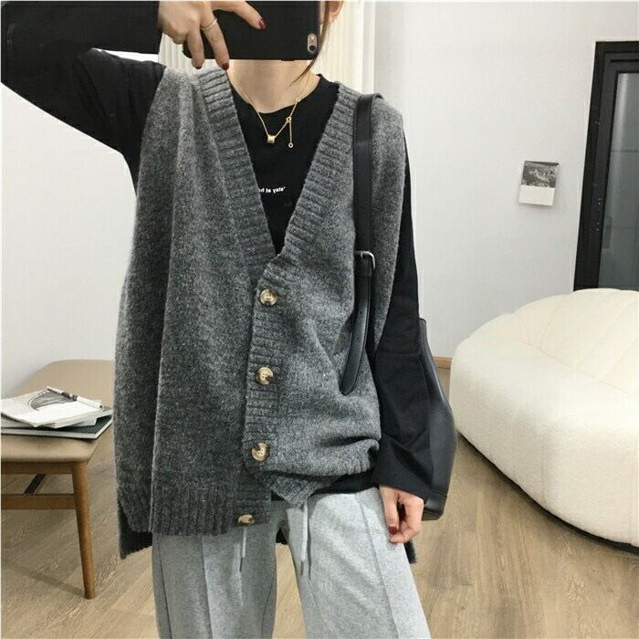 全4色 大きいサイズ 体型カバー トップス ベスト ジレ ニット レディース きれいめ カジュアル 羽織り フェミニン 大人 可愛い シンプル ベーシック レイヤード 抜け感 こなれ感 オーバーサイズ ゆったり ベージュ ブラウン グレー ブラック 黒 春 秋 冬 20代 30代 40代 50代