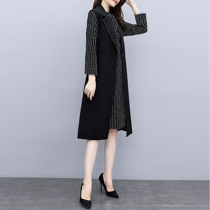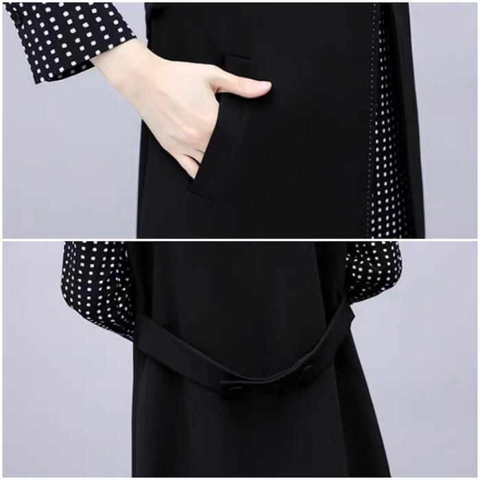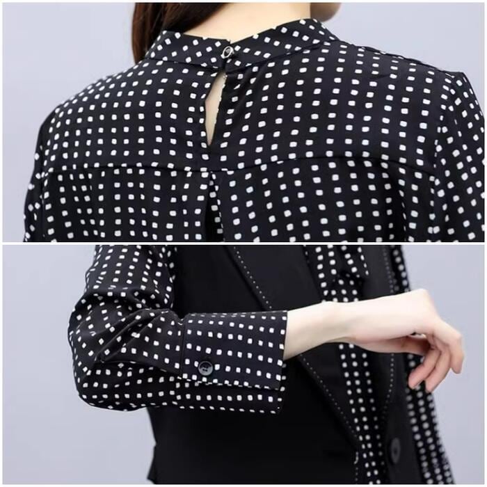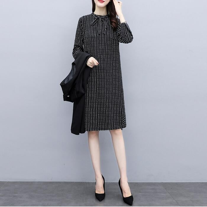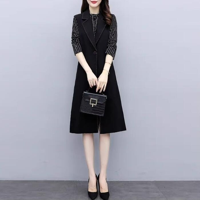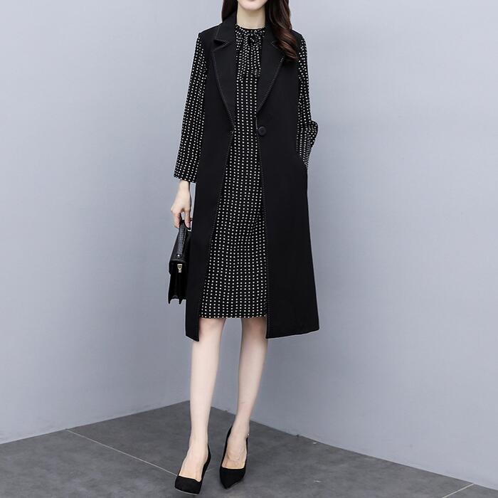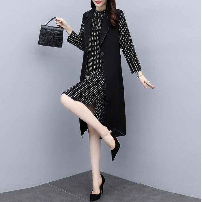 大きいサイズ セットアップ レディース おしゃれ ツーピース ジャケット ベスト ワンピース ひざ丈 ドット シフォン 長袖 Aライン エレガント きれいめ カジュアル レイヤード 通勤 オフィス 大人 可愛い 重ね着 ブラック 黒 春 秋 冬 20代 30代 40代 50代