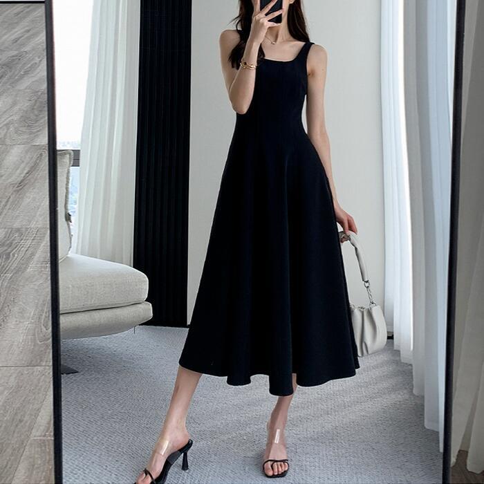 大きいサイズ 体型カバー ワンピース ワンピ ドレス ノースリーブ レディース エレガント きれいめ カジュアル シンプル 大人 可愛い フェミニン ミモレ丈 Aライン ハイウエスト スクエアネック オケージョン 上品 お呼ばれ 春 秋 夏 20代 30代 40代 50代