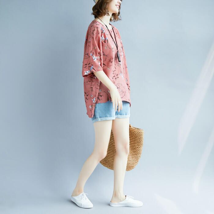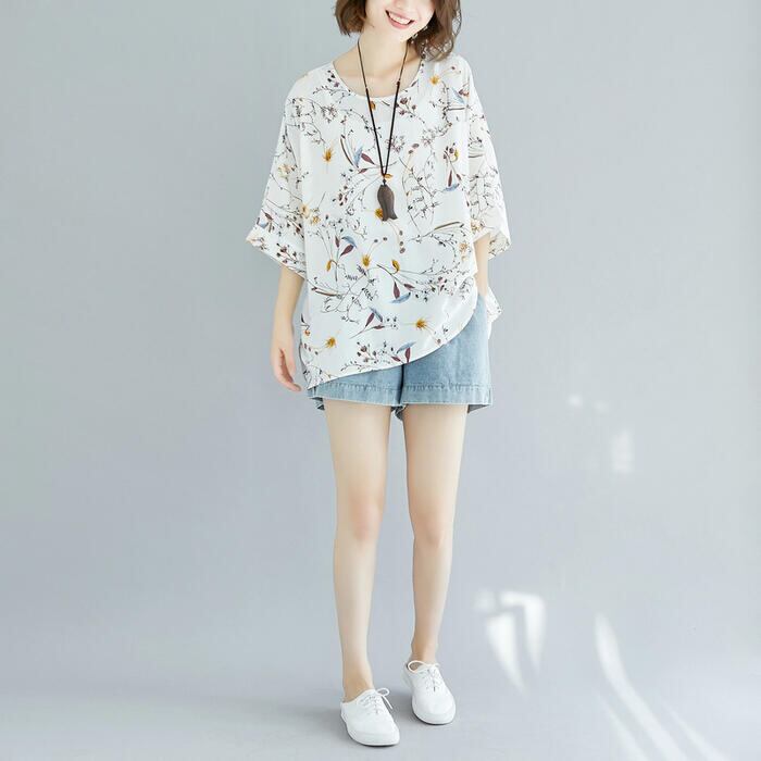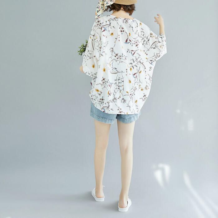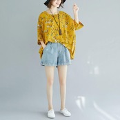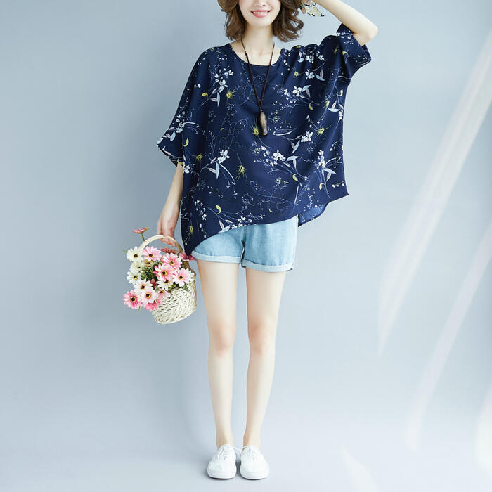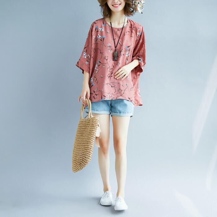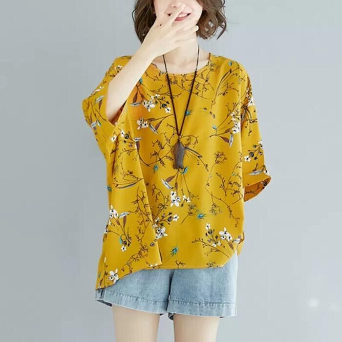 全4色 大きいサイズ トップス ブラウス シャツ カットソー 花 ボタニカル フラワー ドルマンスリーブ レディース エレガント 五分袖 きれいめ カジュアル フェミニン 大人 可愛い ゆったり 体型カバー イエロー ピンク ブルー 青 ホワイト 白 春 秋 夏 20代 30代 40代 50代