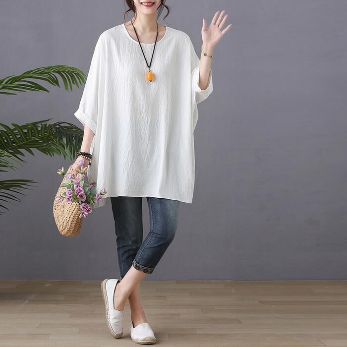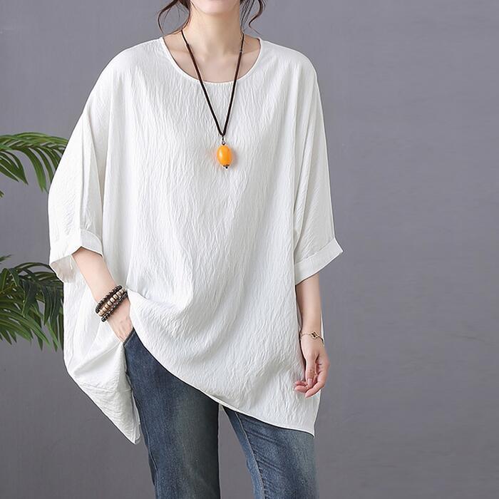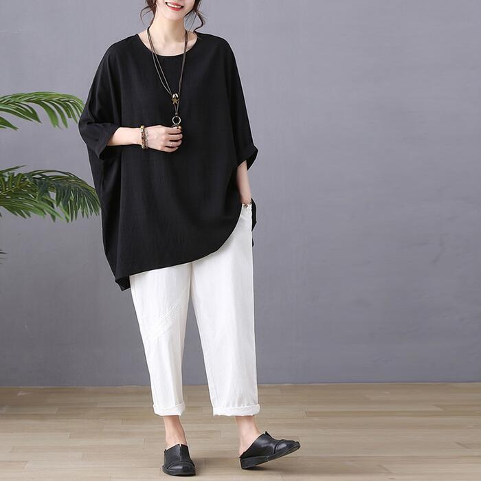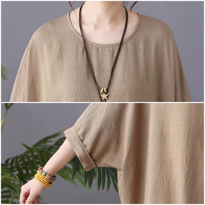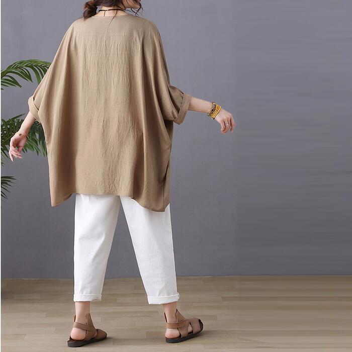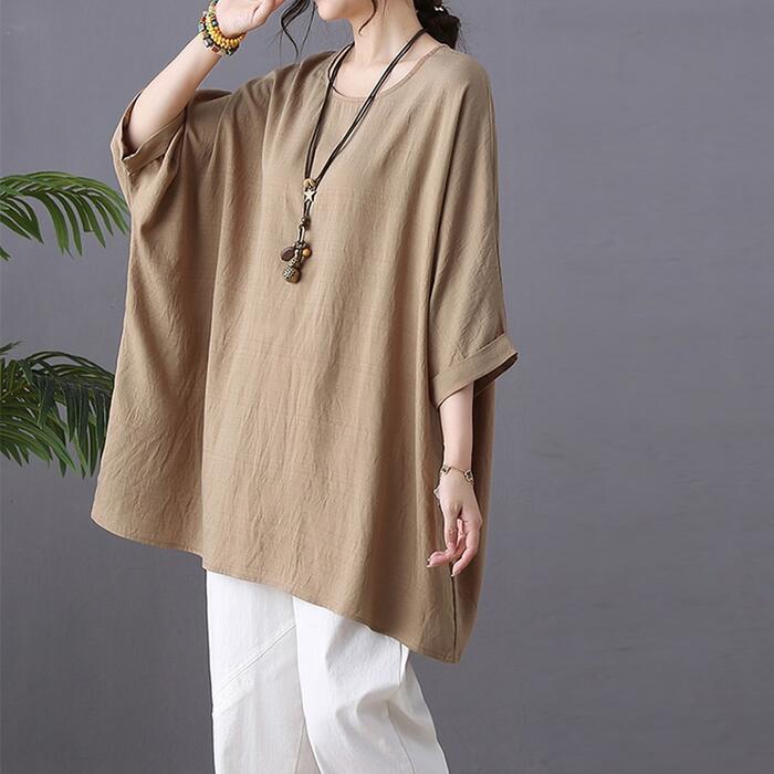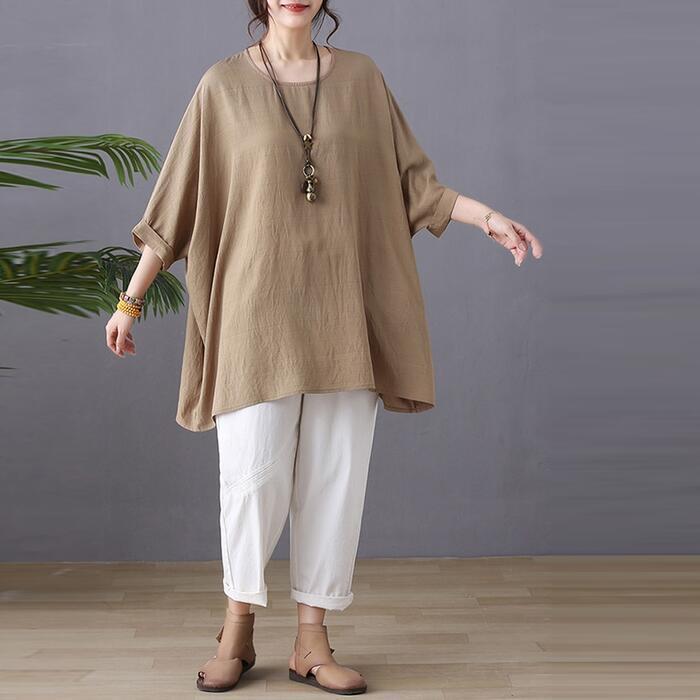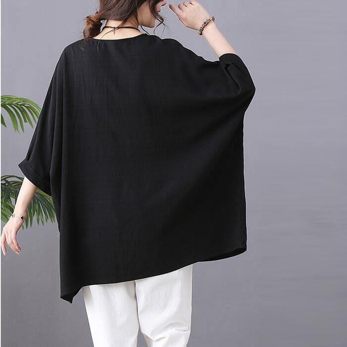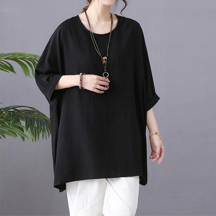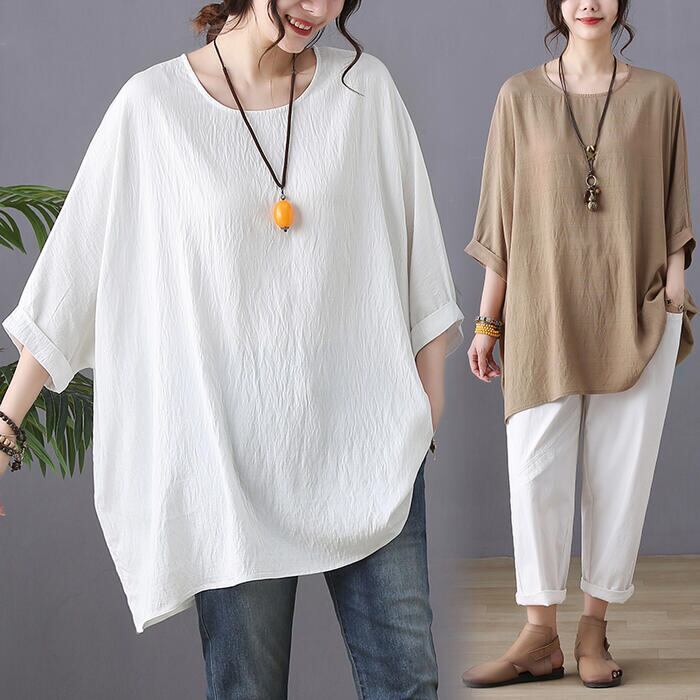 全3色 大きいサイズ トップス ブラウス シャツ カットソー 綿麻 リネン混 ドルマンスリーブ レディース エレガント 五分袖 きれいめ カジュアル フェミニン 大人 可愛い ゆったり 体型カバー ベージュ ブラック 黒 ホワイト 白 春 秋 夏 20代 30代 40代 50代