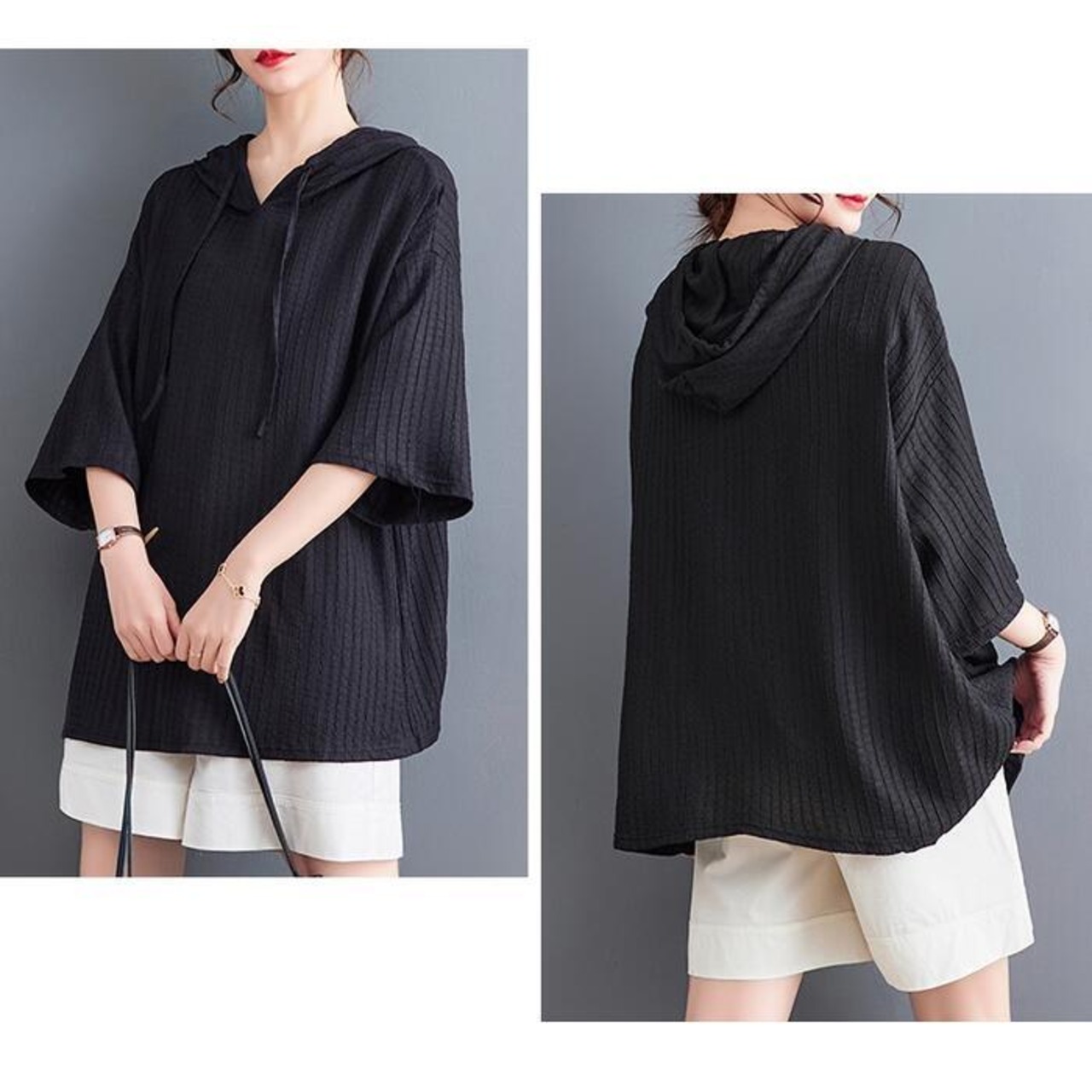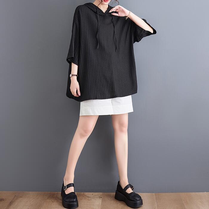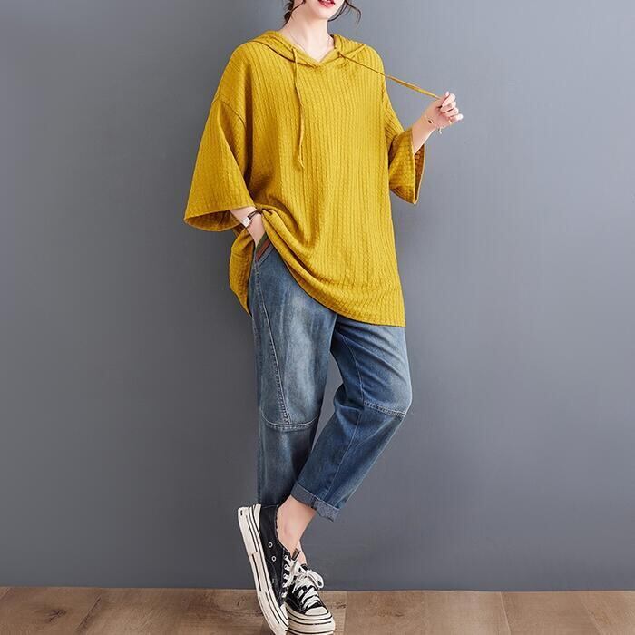 ゆったりオーバーサイズのフード付きトップス。