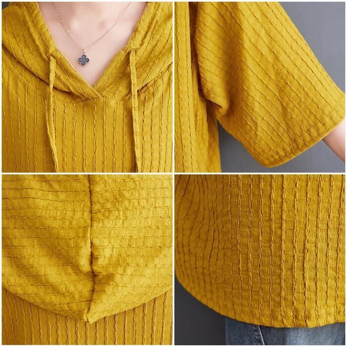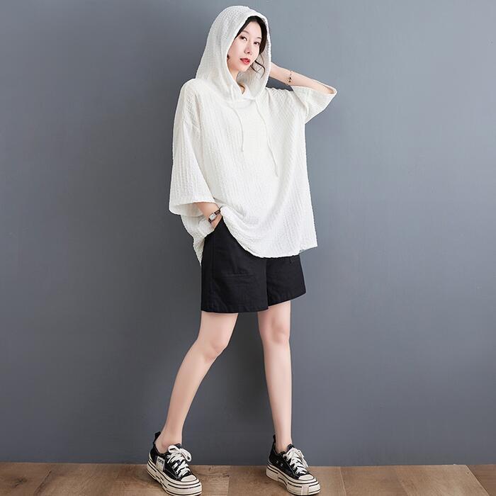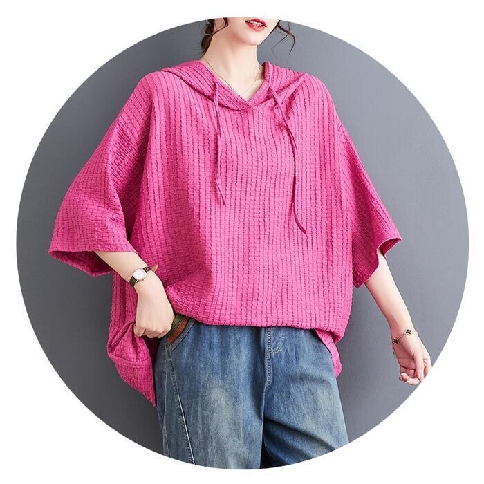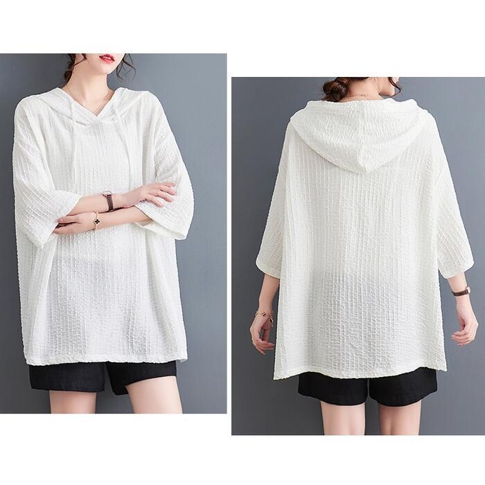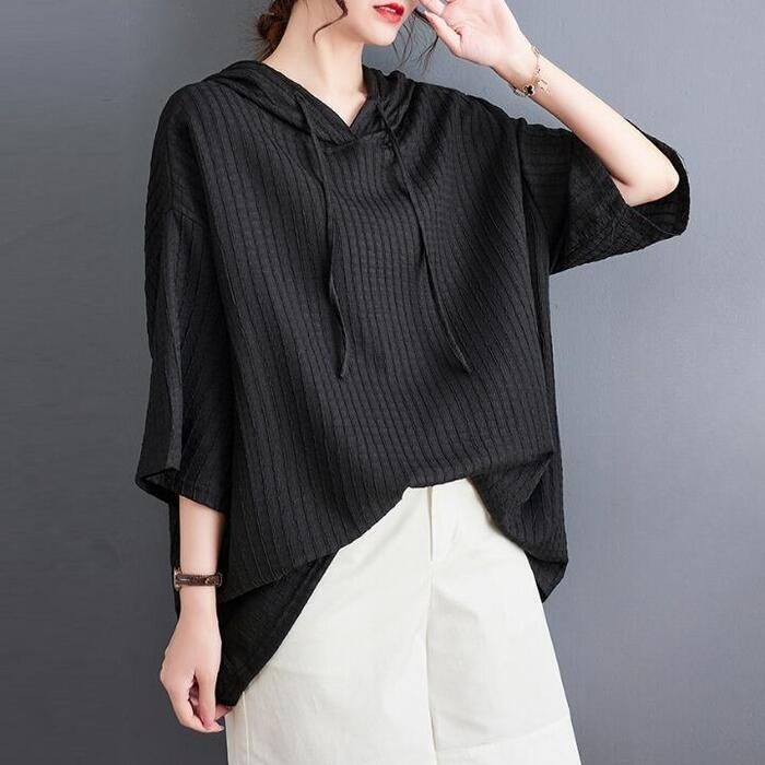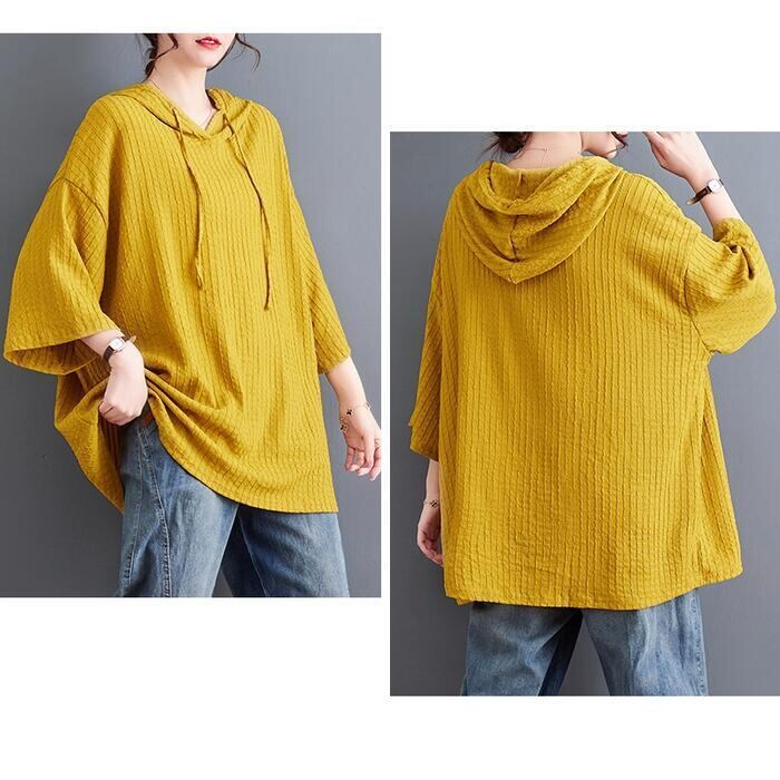 全4色 大きいサイズ リラックス トップス ブラウス シャツ カットソー Tシャツ レディース 七分袖 きれいめ カジュアル フェミニン パーカー フーディー 大人 可愛い ゆったり 体型カバー オーバーサイズ ピンク イエロー ブラック 黒 ホワイト 白 春 秋 夏 20代 30代 40代 50代