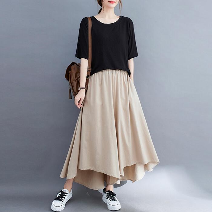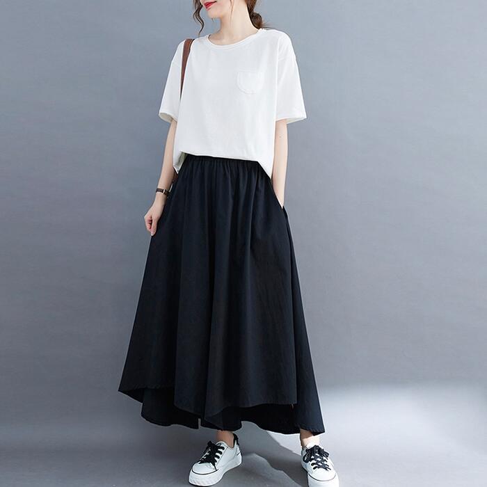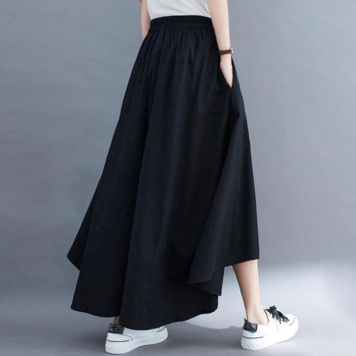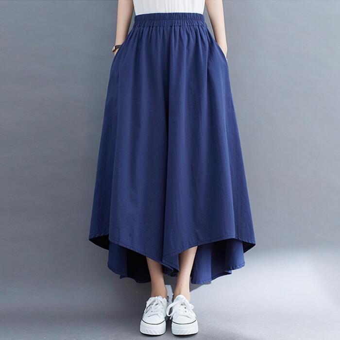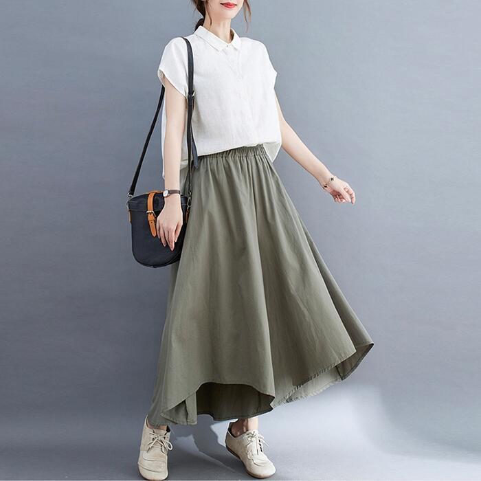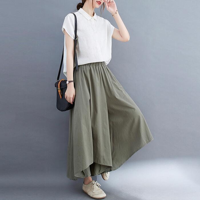 全4色 大きいサイズ 体型カバー ウエストゴム ボトムス パンツ ワイドパンツ ガウチョ スカンツ レディース エレガント きれいめ カジュアル ロング丈 フレアパンツ スカート 大人 可愛い シンプル フェミニン ベージュ グリーン 緑 ブルー 青 ブラック 黒 春 夏 秋 20代 30代 40代 50代