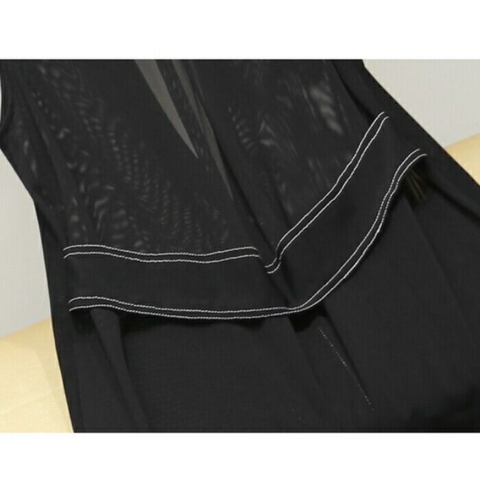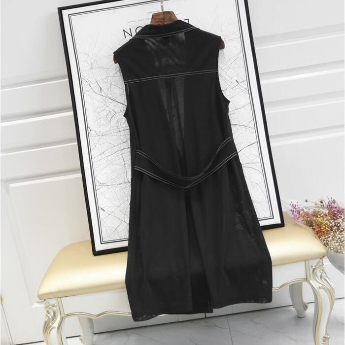 透け感のある軽やかな素材で仕立てたロングベスト。