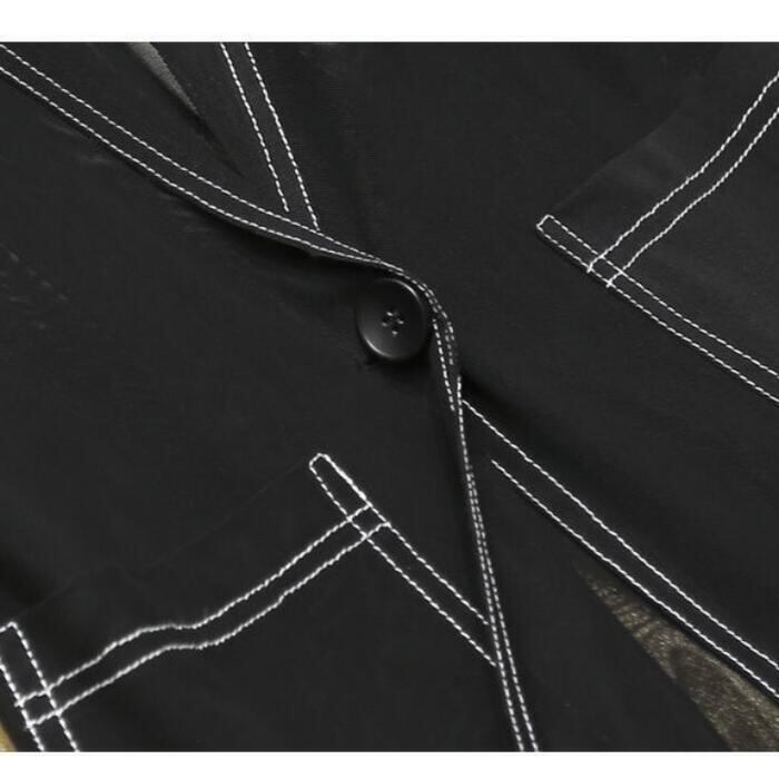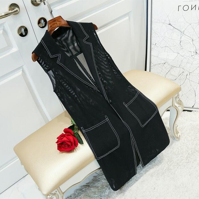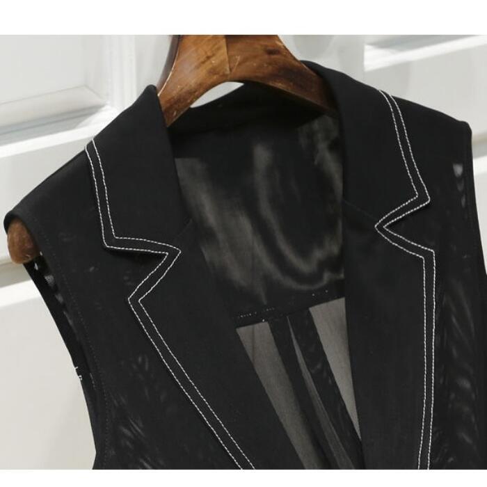 大きいサイズ トップス ベスト ジレ ジャケット アウター シアー カーディガン 羽織り テーラード ステッチ レディース カジュアル ノースリーブ フェミニン 大人 可愛い トラッド 透け感 体型カバー ブラック 黒 春 秋 夏 20代 30代 40代 50代