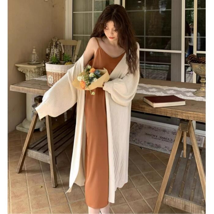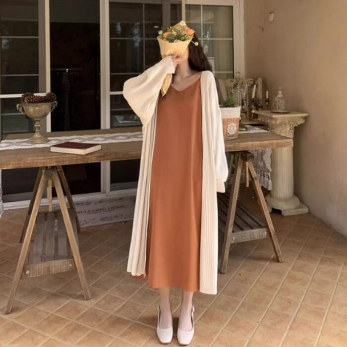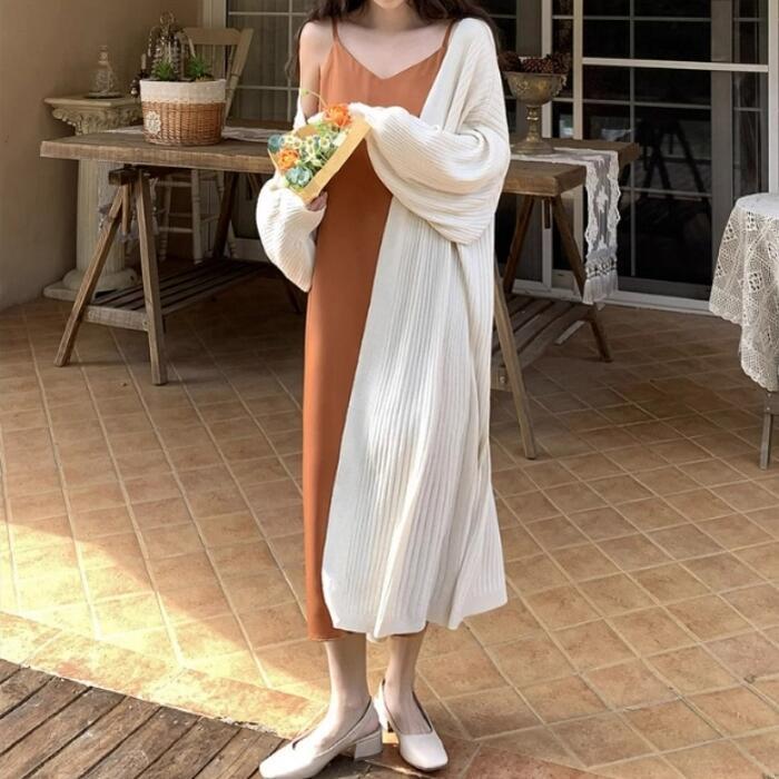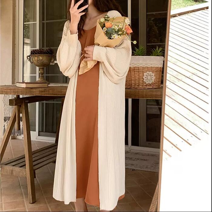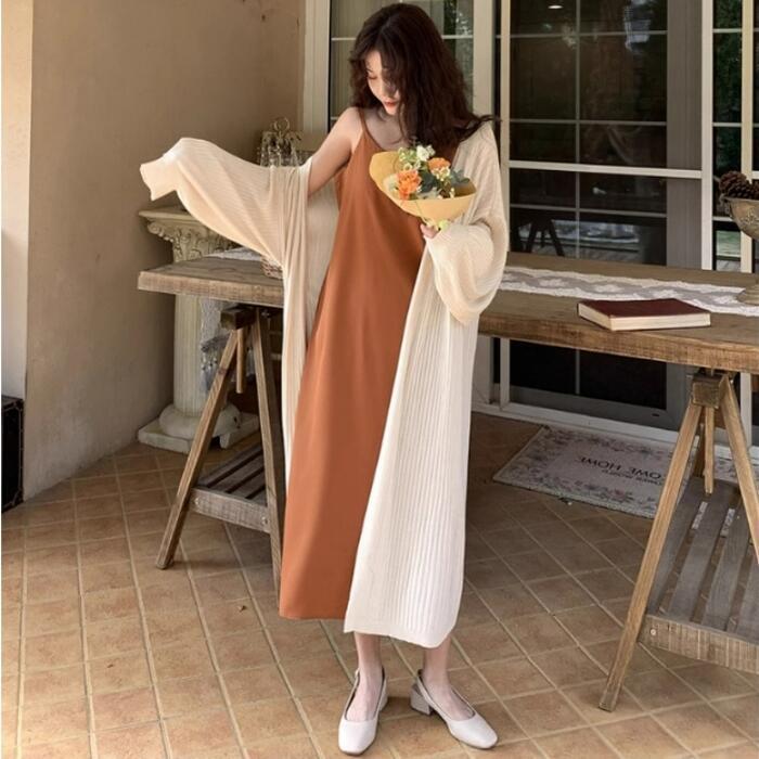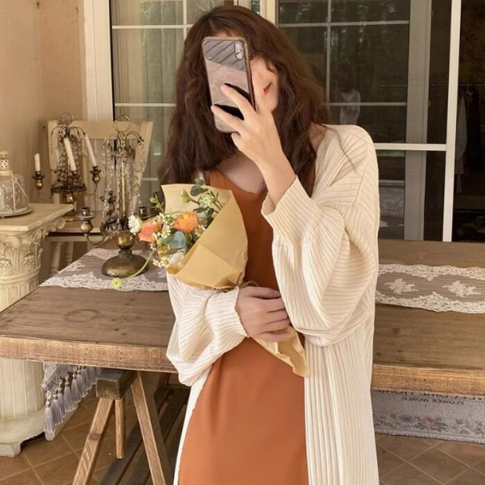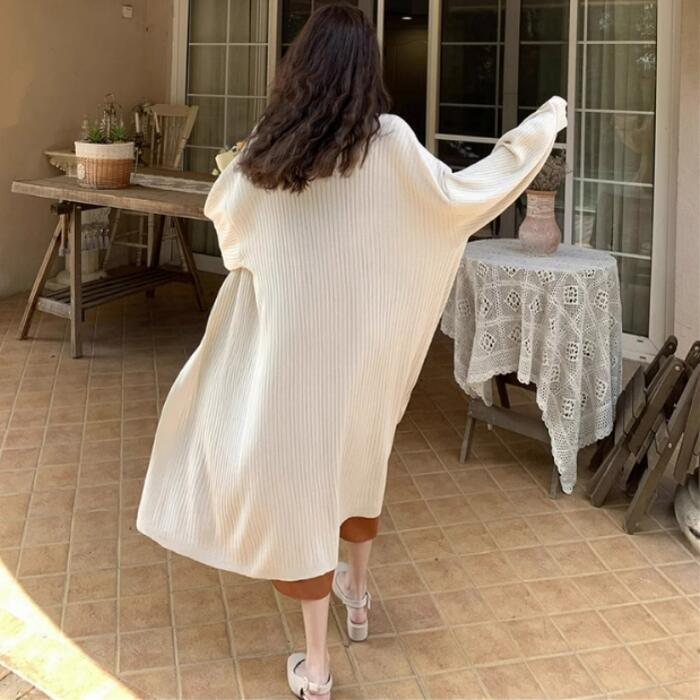 ひざ下までしっかりある丈感が魅力のサマーニットカーディガン。