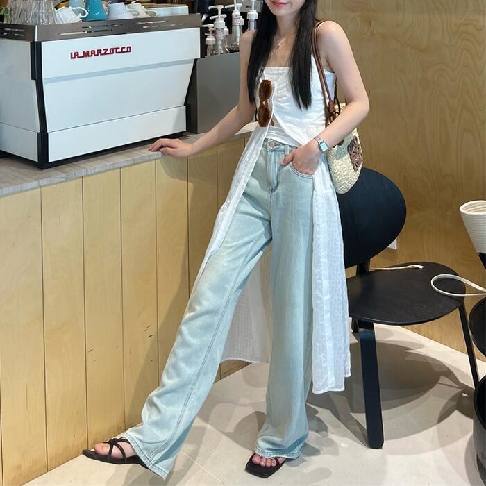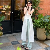 フロントを開けたレイヤードコーデもサマになります。