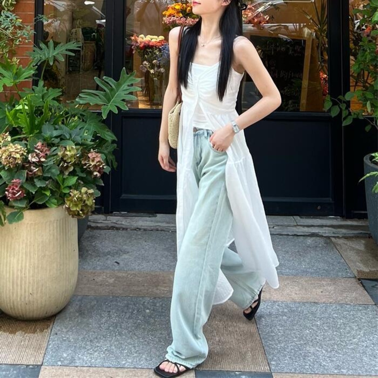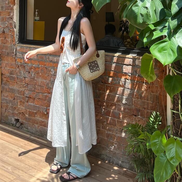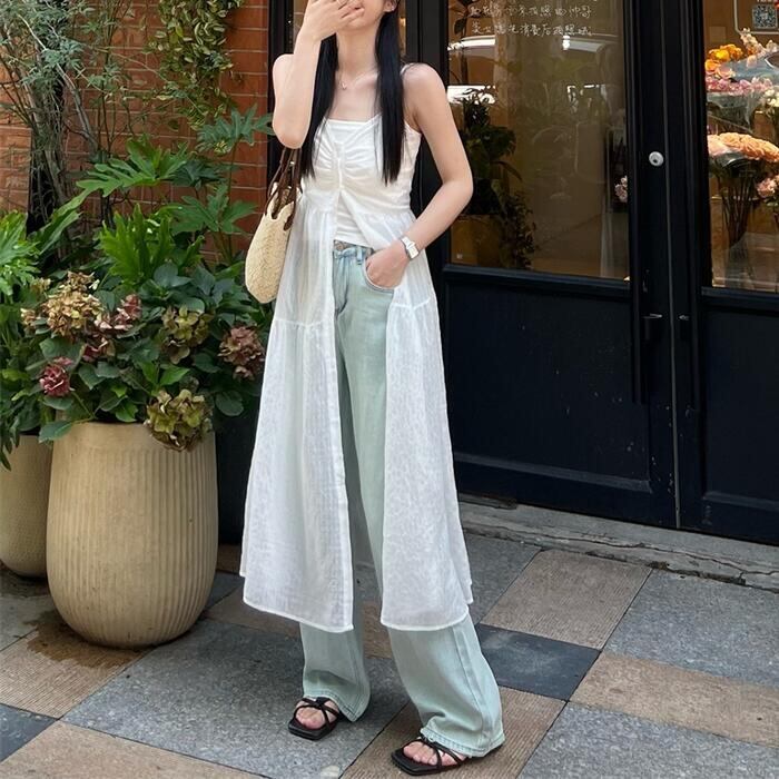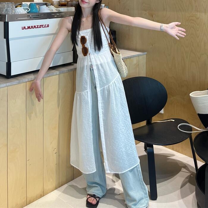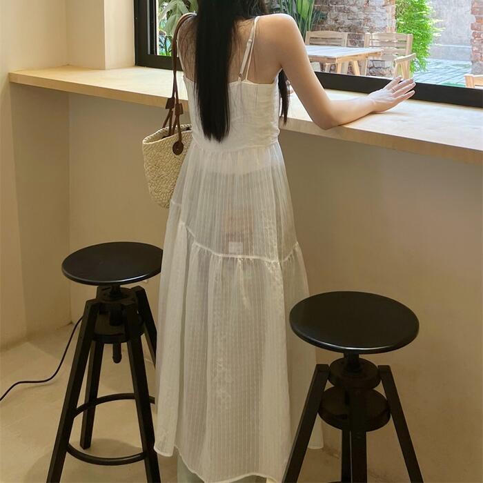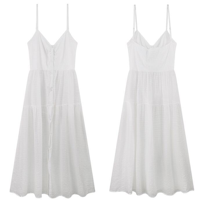 薄手で涼し気なフロントボタンのキャミワンピース。