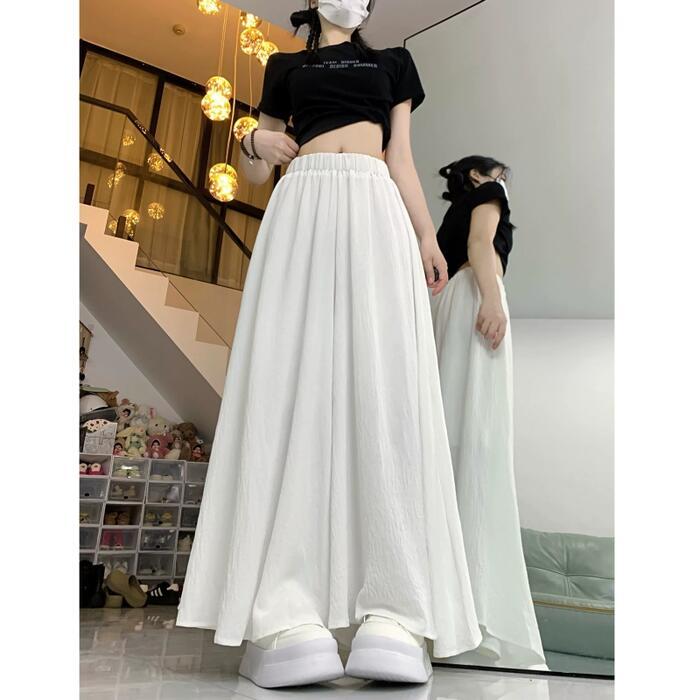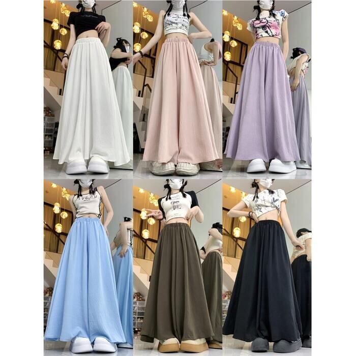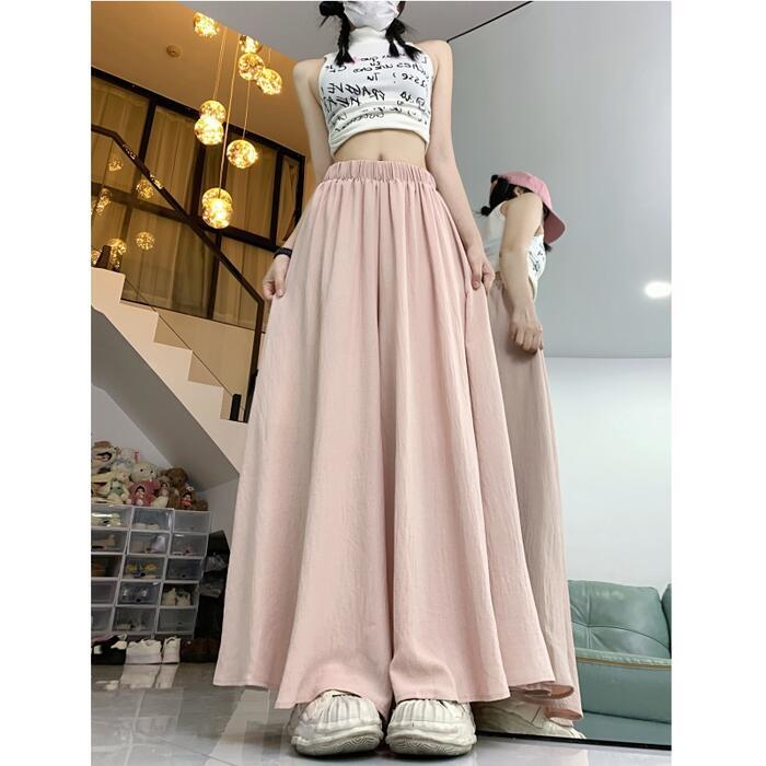 全6色 大きいサイズ 体型カバー ウエストゴム シンプル ボトムス パンツ ワイドパンツ ガウチョ スカンツ レディース エレガント きれいめ カジュアル ロング丈 フレアパンツ スカート 大人 可愛い フェミニン ピンク カーキ ブルー 青 パープル ホワイト 白 ブラック 黒 春 夏 秋 20代 30代 40代 50代