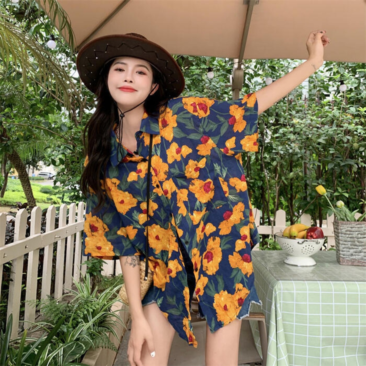 絶妙な配色が可愛いフラワープリントシャツ。