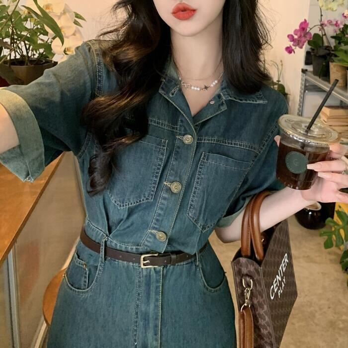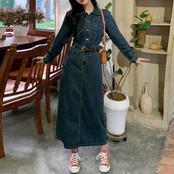 すとんとしたシルエットでスマートに着こなせるデニムワンピース。