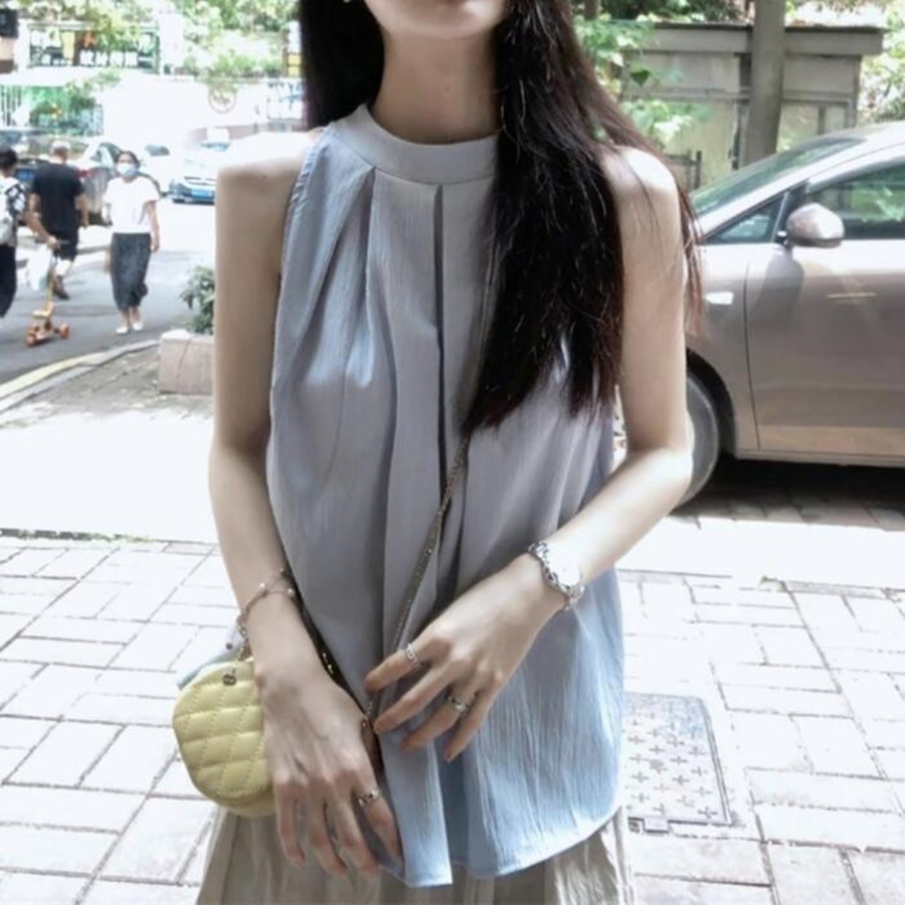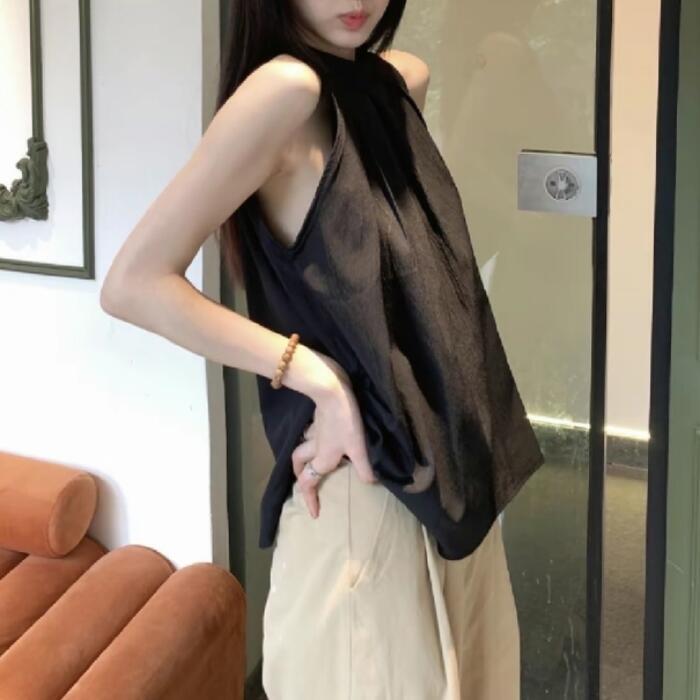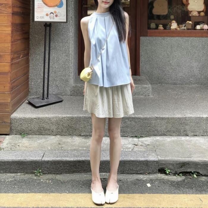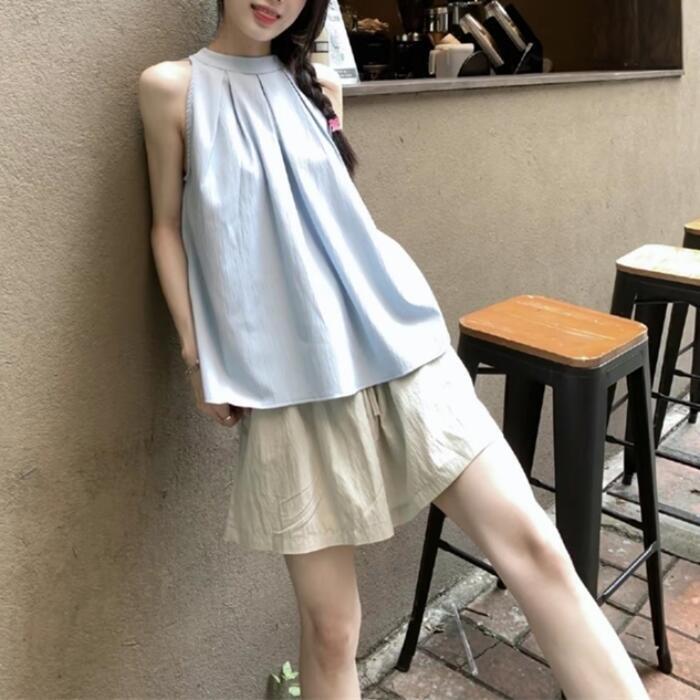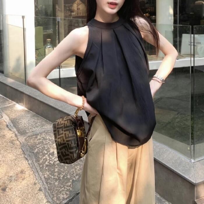 どんなボトムスとも好相性なノースリーブトップス。