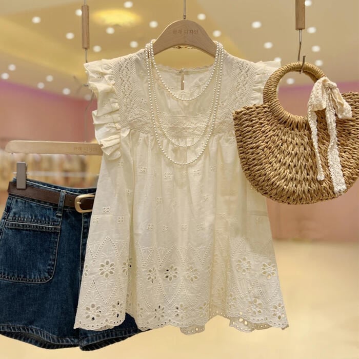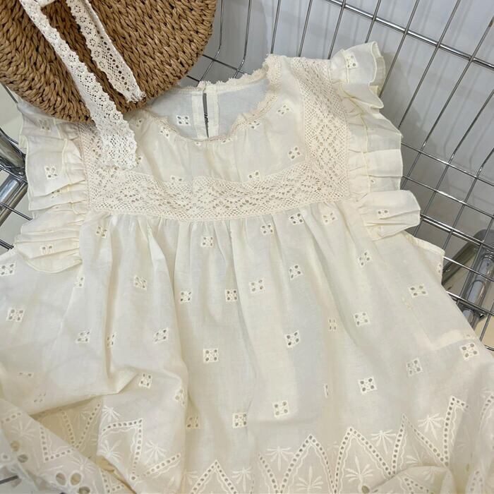 カットワークレースが上品可愛いノースリーブブラウス。