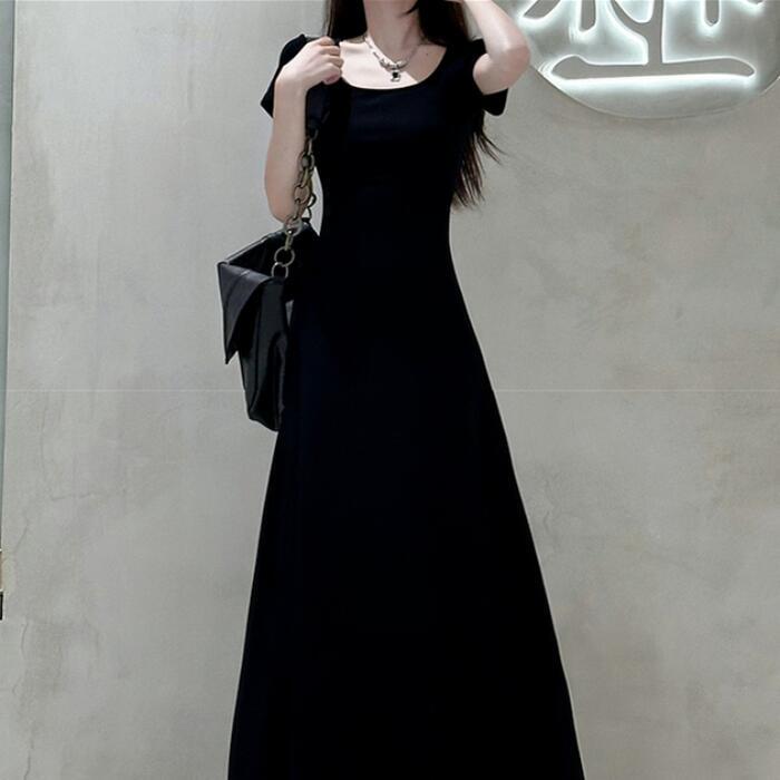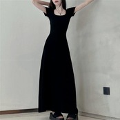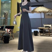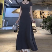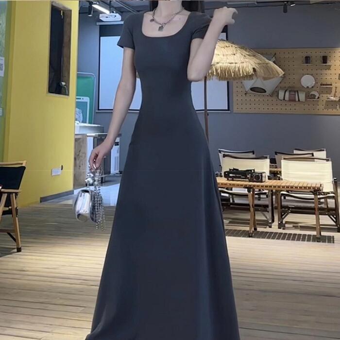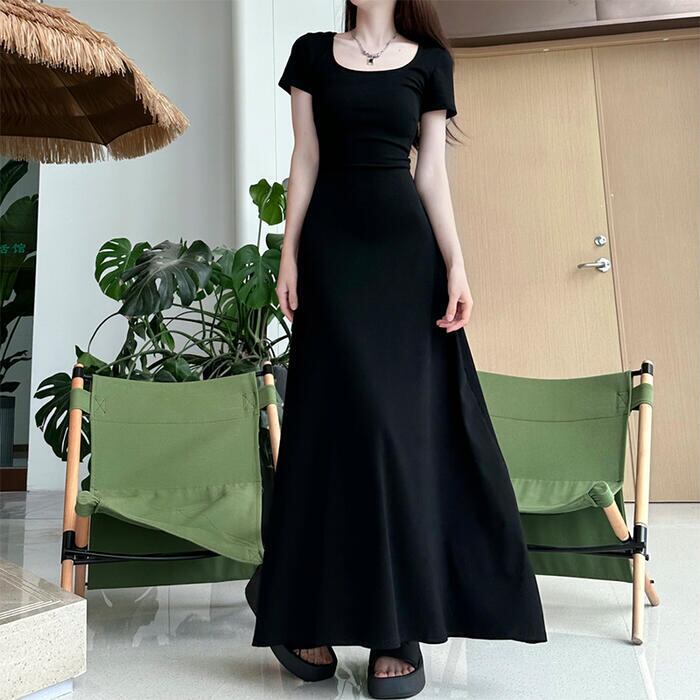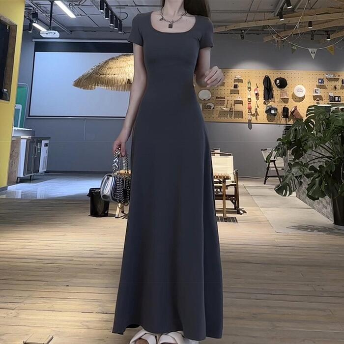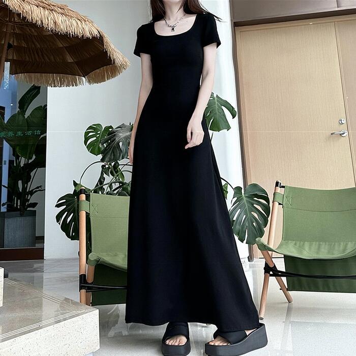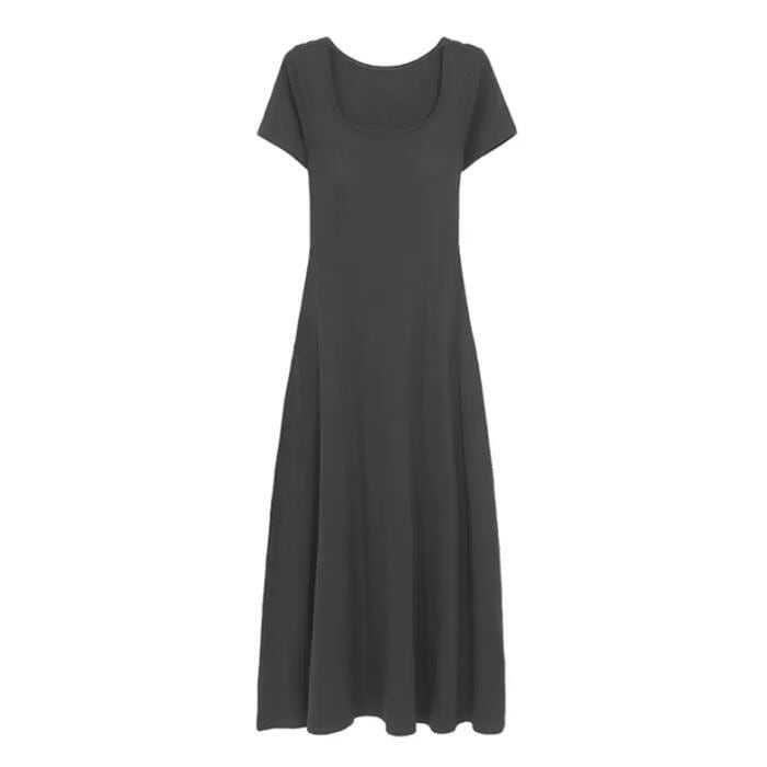 シンプルで使い勝手の良い半袖ロングワンピース。