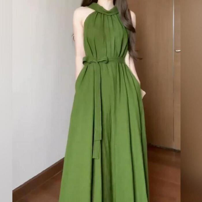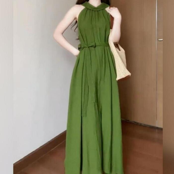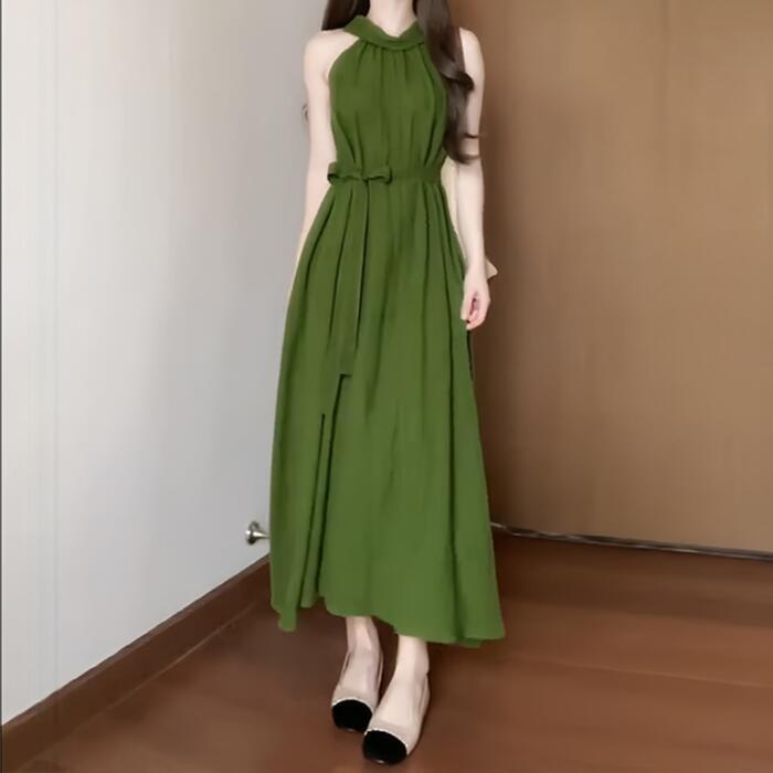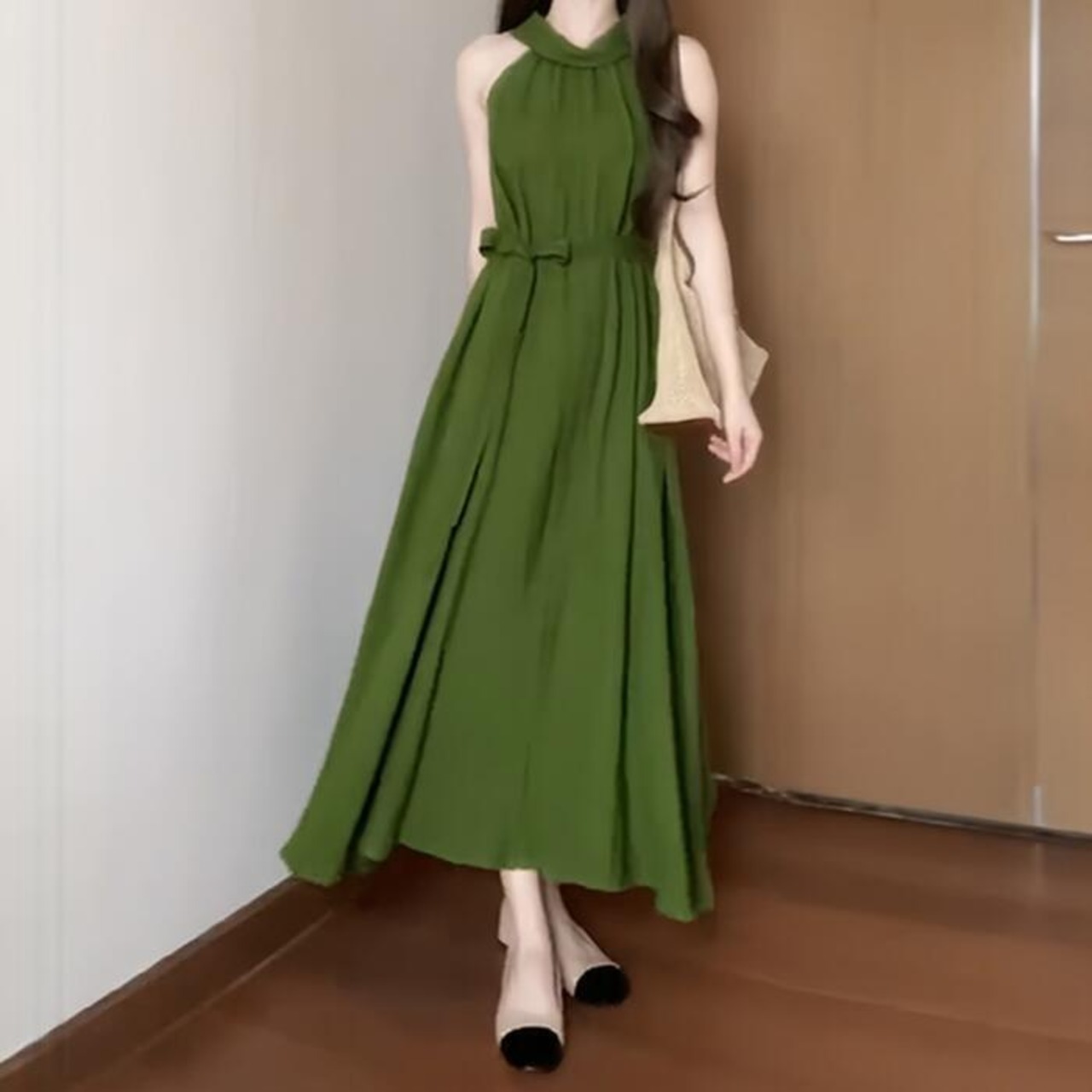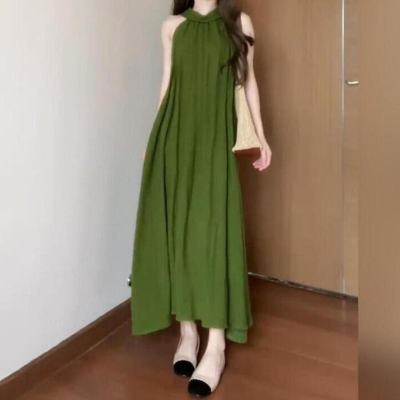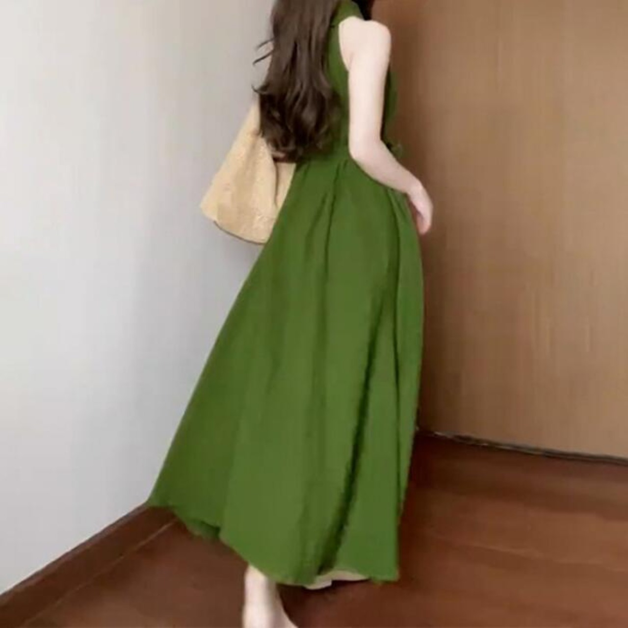 大きいサイズ ワンピース ワンピ ドレス レディース エレガント きれいめ カジュアル アメリカンスリーブ 大人 可愛い フェミニン ナチュラル Aライン ロング丈 ノースリーブ ゆったり 体型カバー グリーン 緑 春 秋 夏 20代 30代 40代 50代