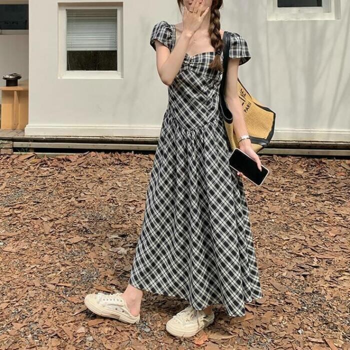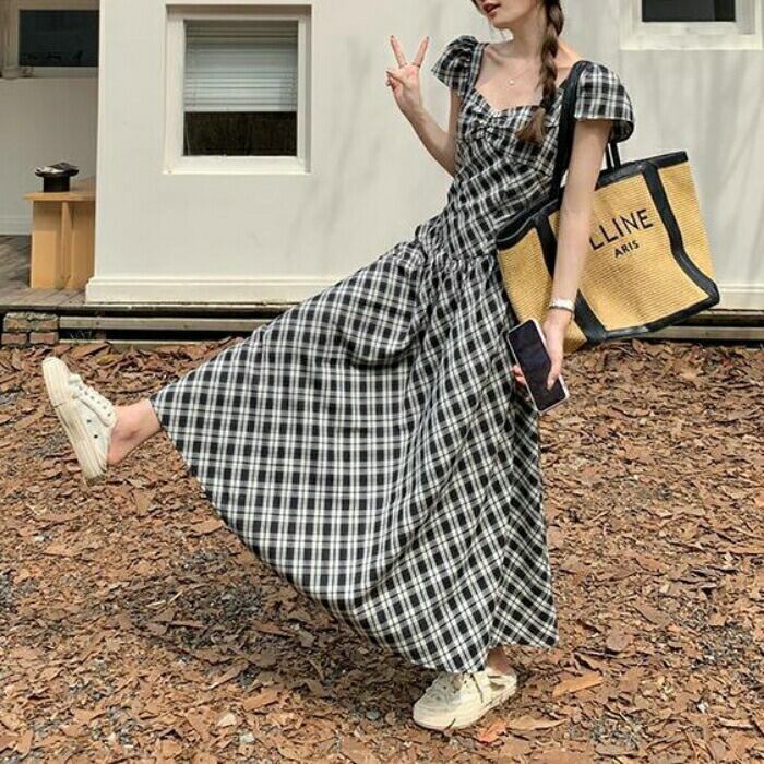 一枚で垢抜けコーデが完成するチェック柄ワンピース。