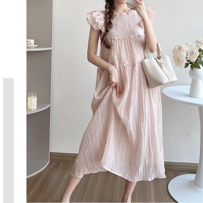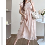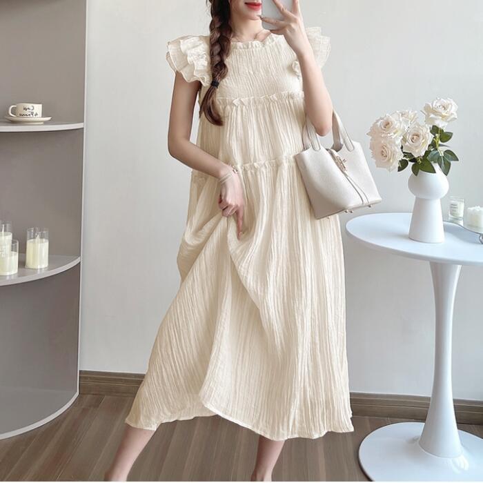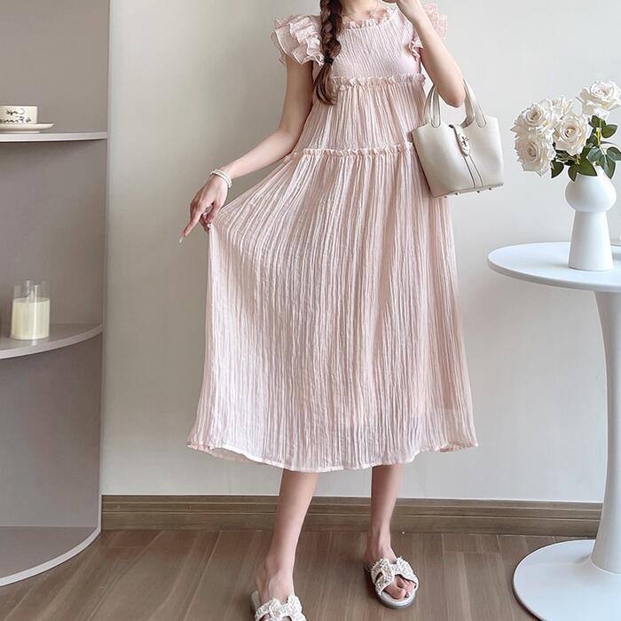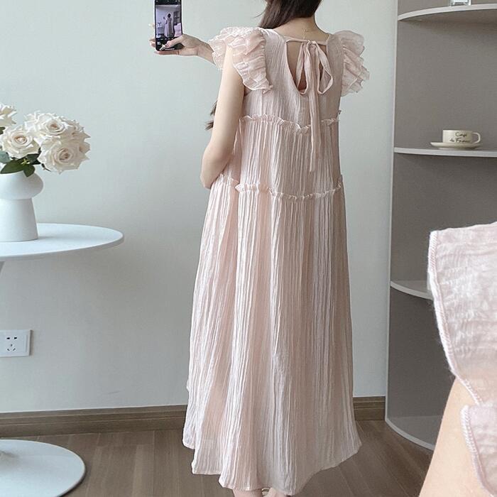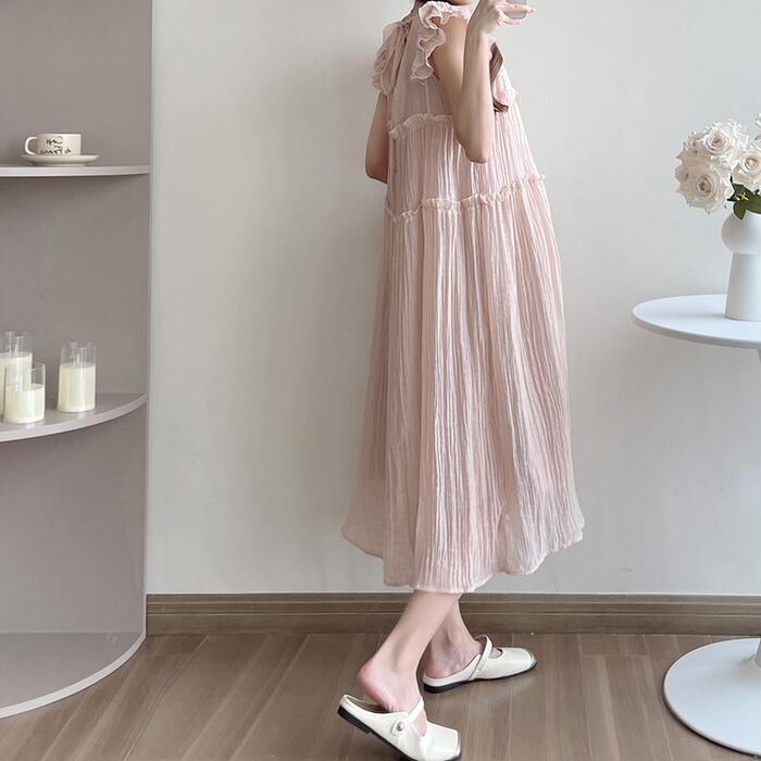 フリルやバックリボンなどフェミニンな雰囲気の楊柳ワンピース。