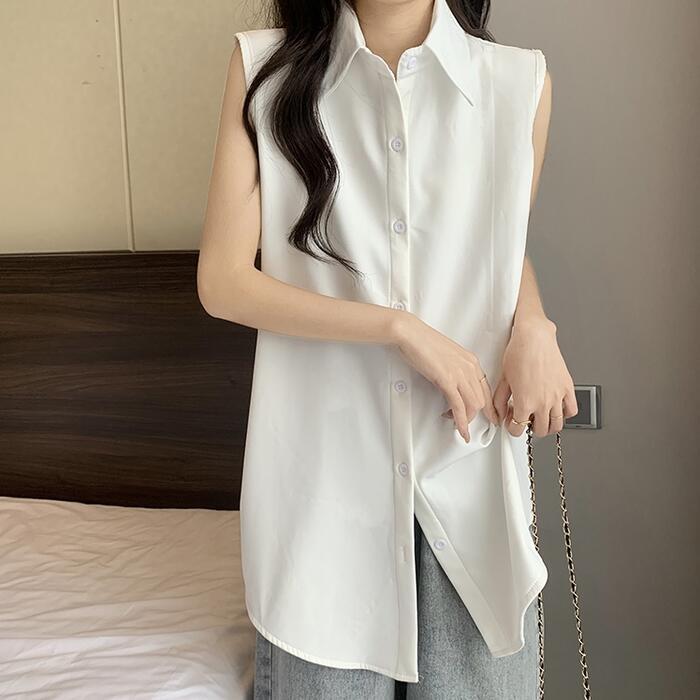 洗練されたシンプルなデザインのノースリーブシャツ。