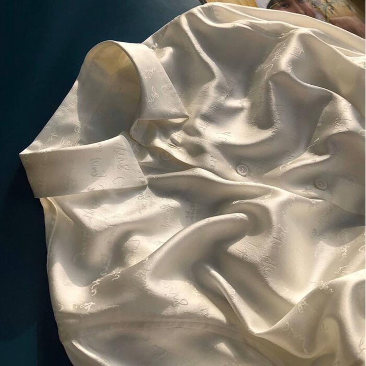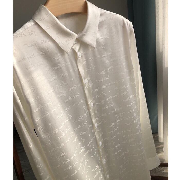 さらりとしたサテン素材が着心地良いホワイトシャツ。