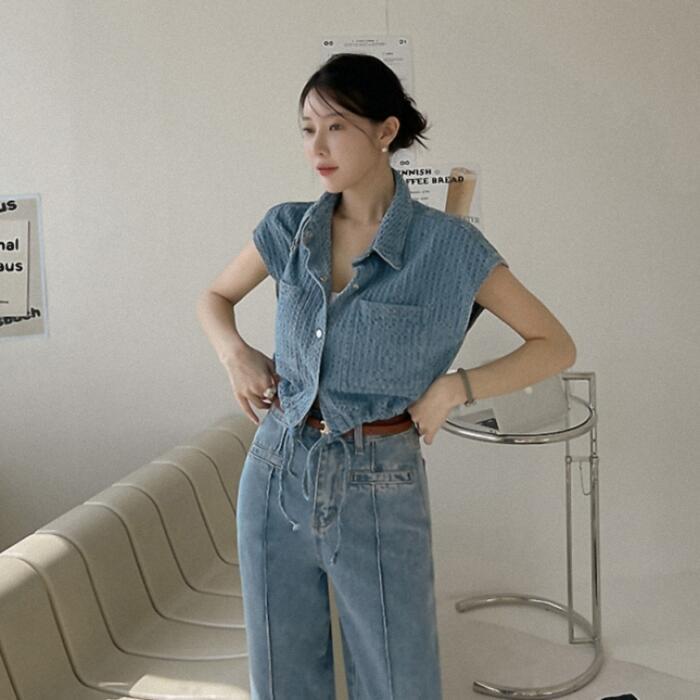 トップスとしても羽織りとしても使えるデニムシャツジャケット。
