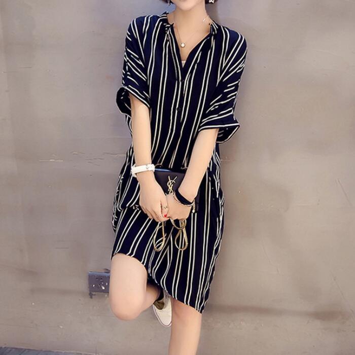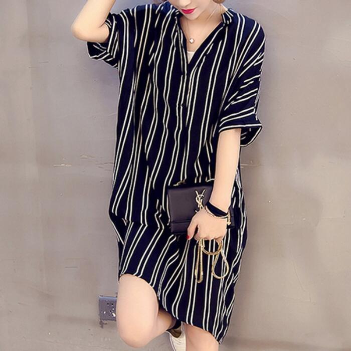全3色 体型カバー 大きいサイズ ゆったり ワンピース ワンピ ドレス チュニック レディース エレガント きれいめ カジュアル ストライプ 五分袖 大人 可愛い フェミニン Aライン ミモレ丈 レイヤード シンプル 涼しい リラックス ブラック 黒 ホワイト 白 春 秋 夏 20代 30代 40代 50代