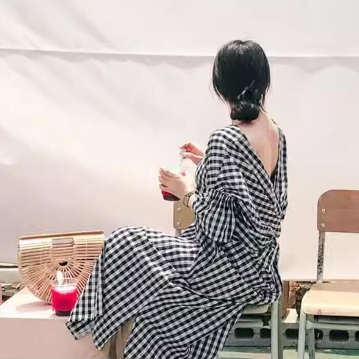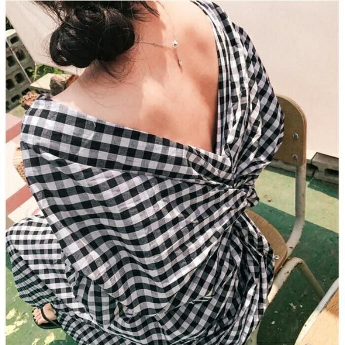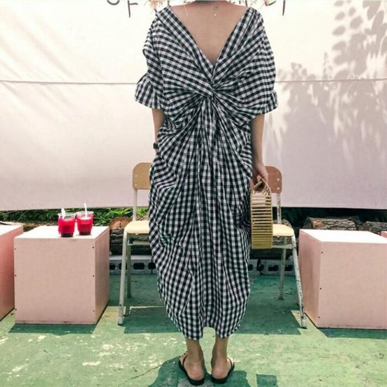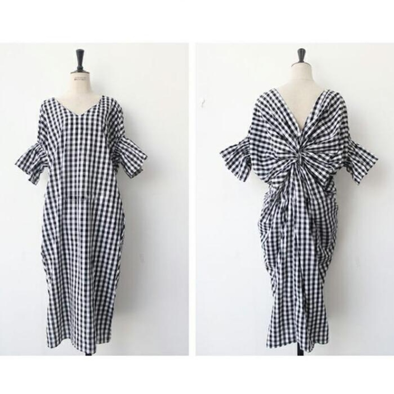 バックデザインにこだわったギンガムチェックワンピース。