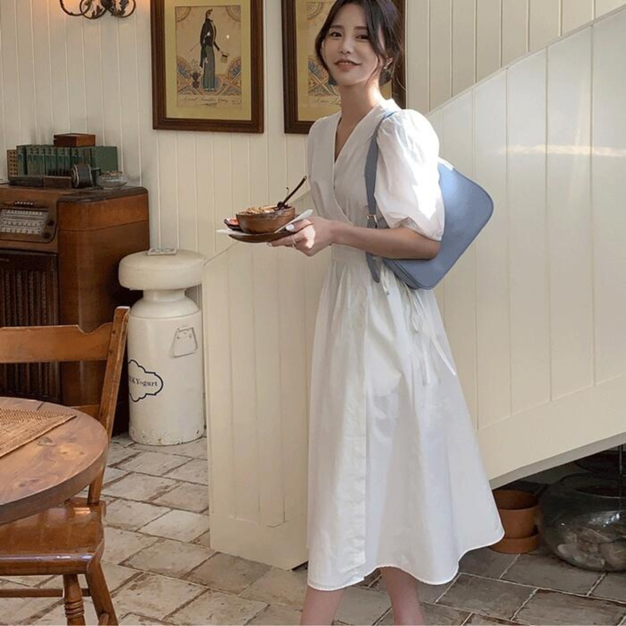 シンプルで美しいデザインが魅力のカシュクールワンピース。
