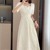 胸下のパールが華やかさをプラスするワンピース。