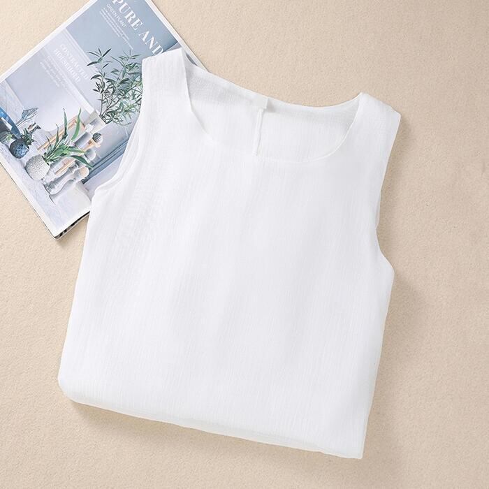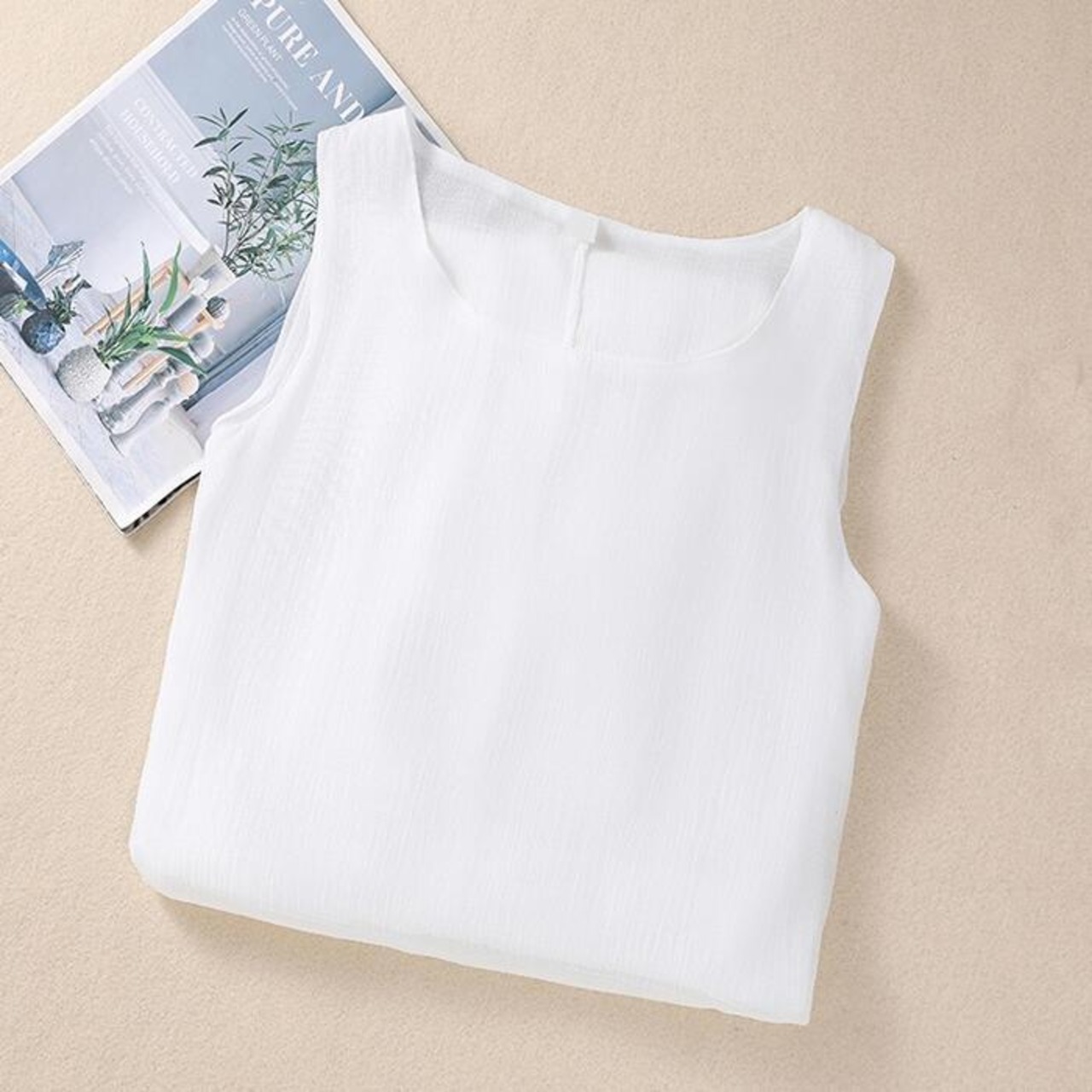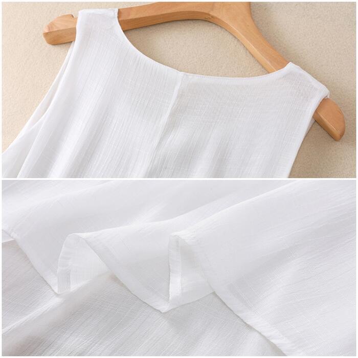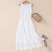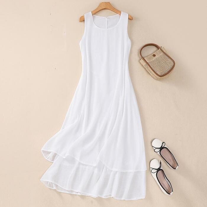レイヤードデザインがポイントの綿麻ノースリーブワンピース。