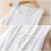 大きいサイズ ワンピース ワンピ ドレス 綿麻 リネン混 レディース エレガント きれいめ カジュアル ノースリーブ 大人 可愛い フェミニン Aライン ミモレ丈 シンプル 無地 ゆったり リボン ナチュラル ホワイト 白 春 秋 夏 20代 30代 40代 50代